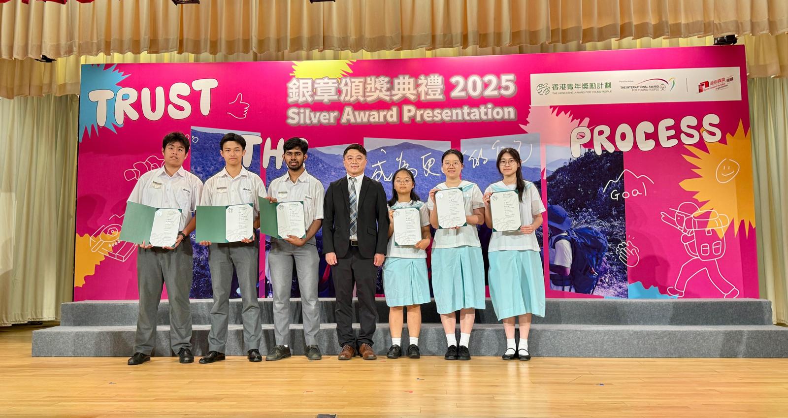 今日,學生們有幸於2025年銀章頒獎典禮上,獲政務司司長陳國基先生(GBS, IDSM, JP)親臨頒發銀章證書,並與警務處處長周一鳴先生合影留念。這份榮譽,正是對他們堅持不懈、努力奮鬥的最佳肯定與見證。🏆🏆🏆