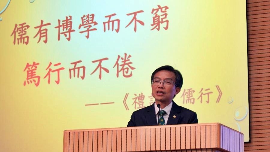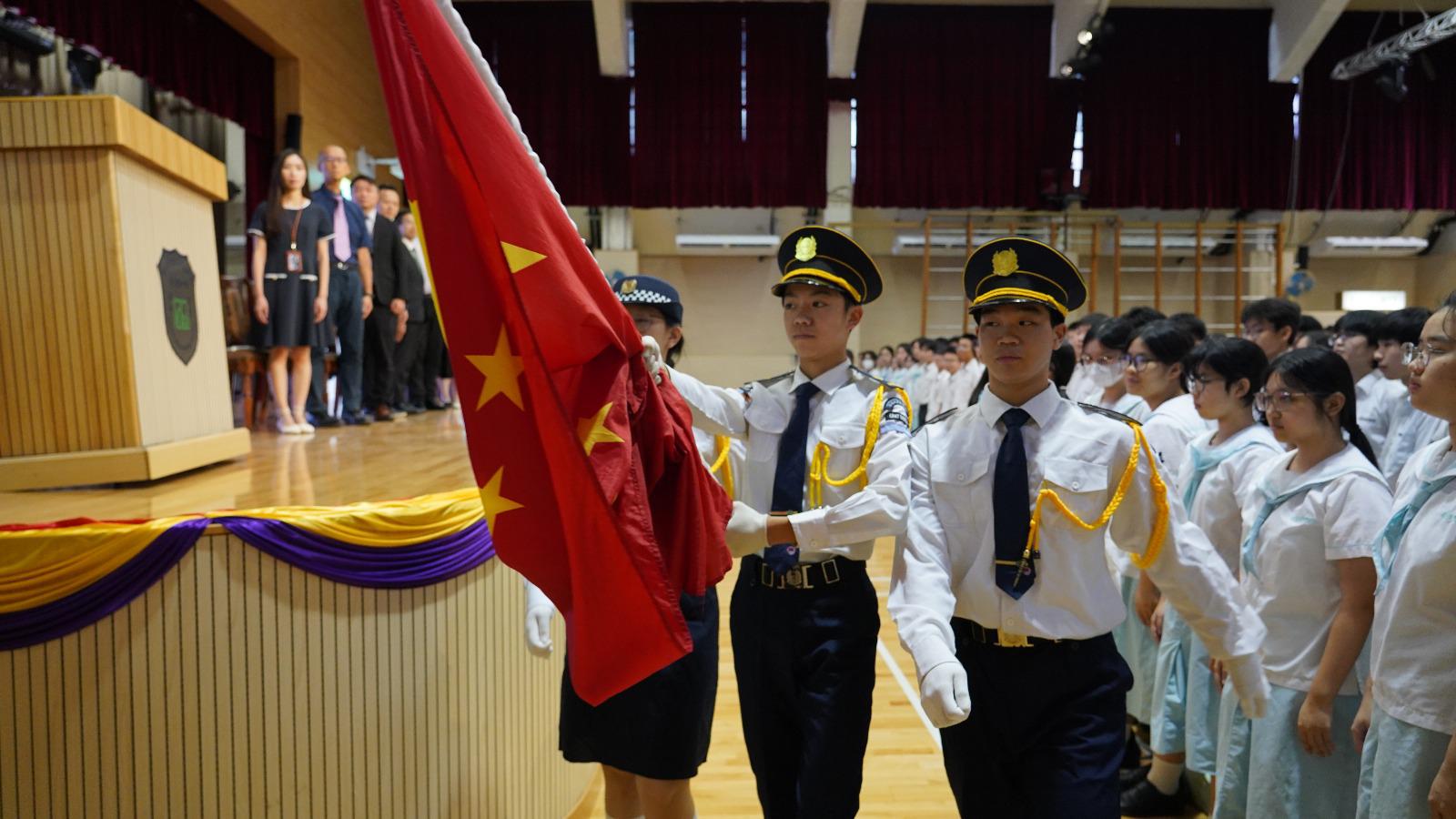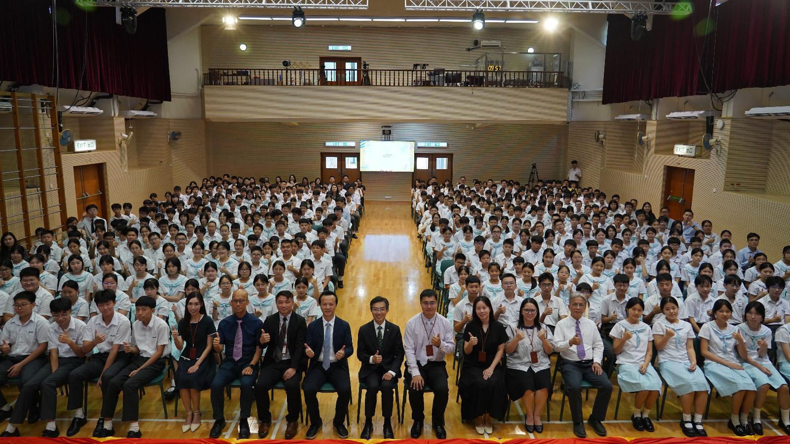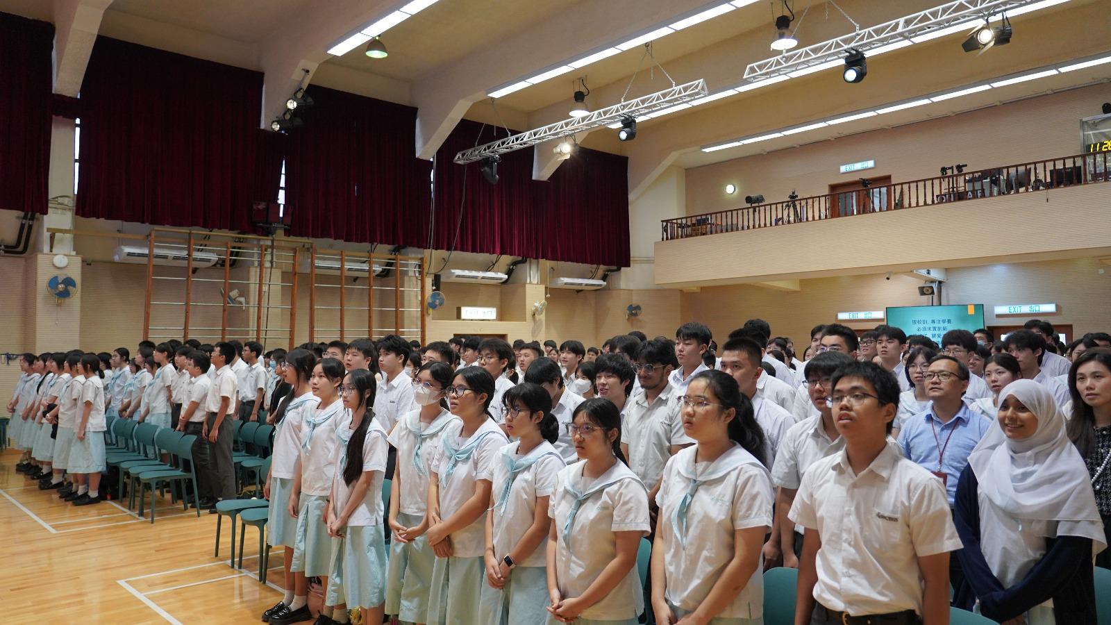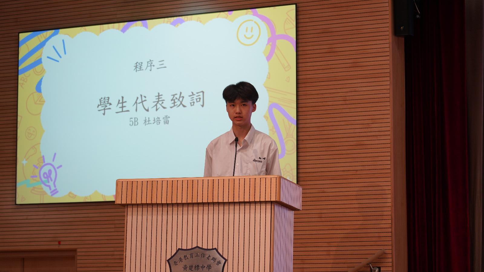 許校長在開學致辭中勉勵同學們珍惜光陰⏳、奮發向上🚀,以勤學積累能力📚,用行動書寫未來✍,肩負起貢獻國家與社會的新時代責任🌍。學生會主席5B杜培雷同學代表全體學生發言,他表示:「我們青年人心懷家國❤,深知今日所學,是為了明日能托起時代的重量💪。」