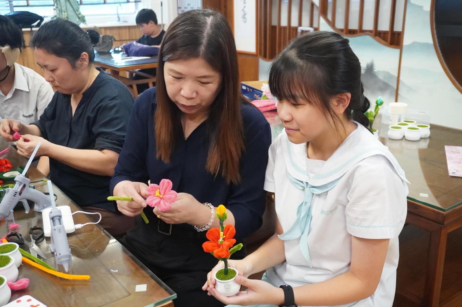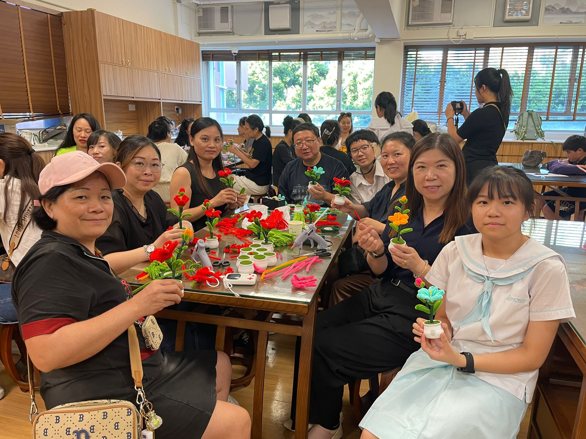 當天家長執委與二十多位家長義工齊聚一堂,在廖海英主席的耐心指導下,運用巧手製作永不凋謝的盆栽花卉🌺 從精心挑選花材、細心組合搭配到創意裝飾,每個環節都承載著對老師們的誠摯謝意💝