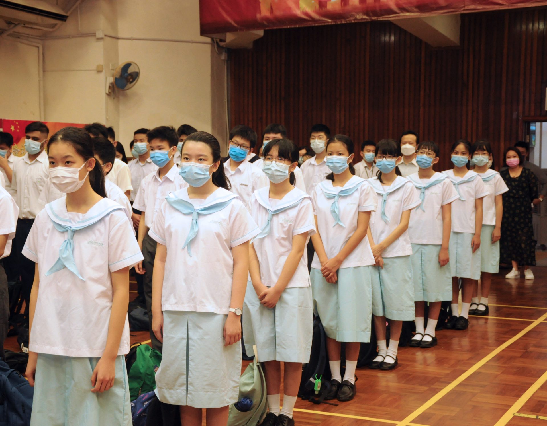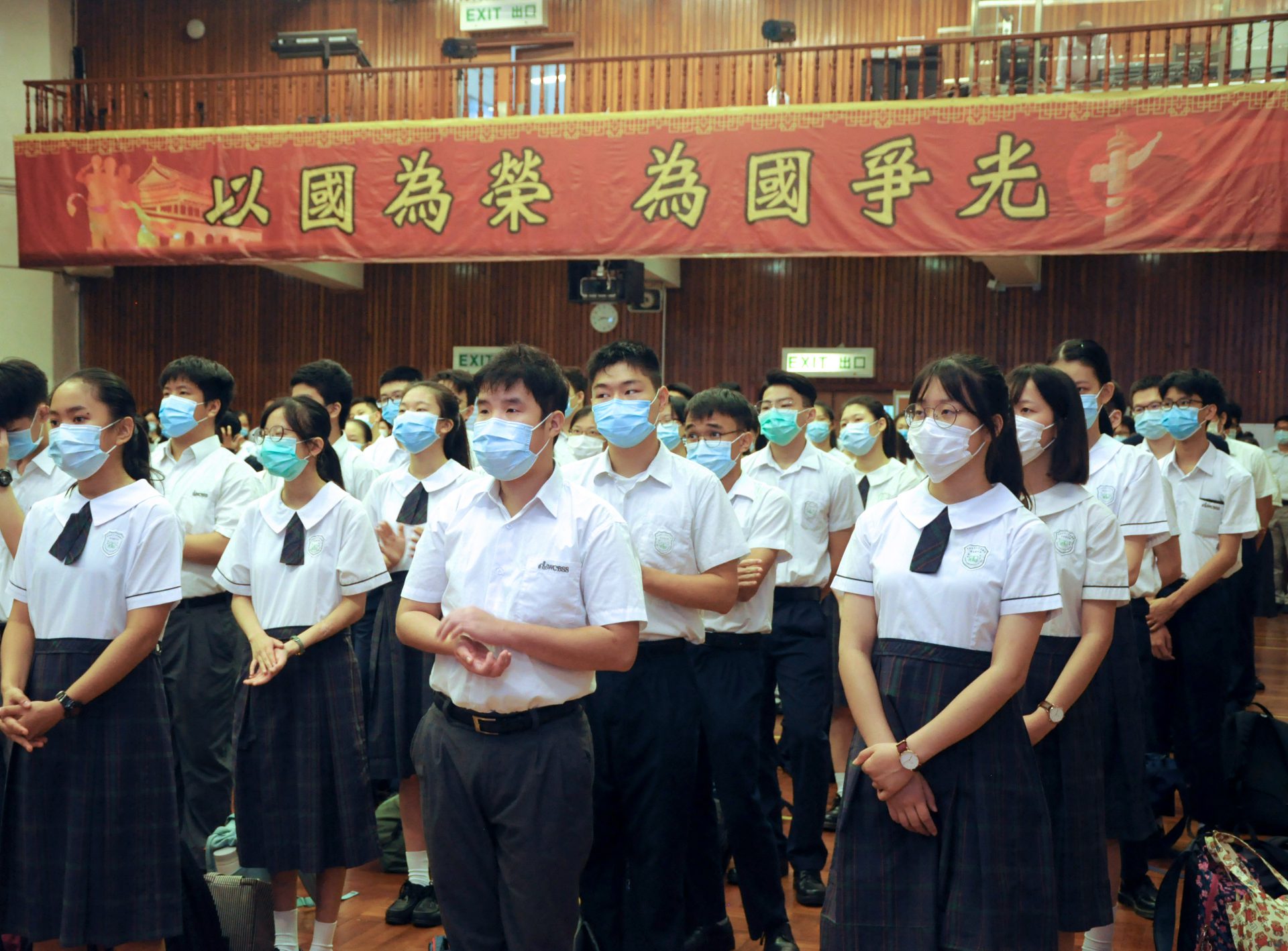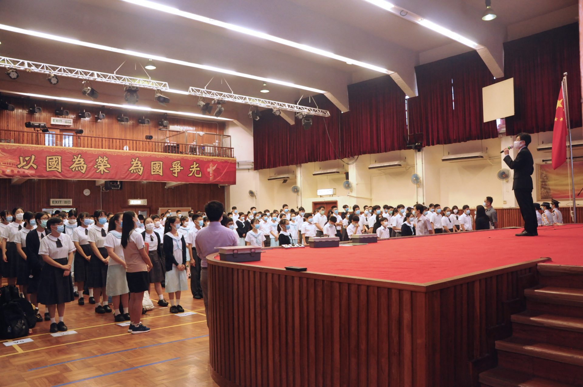 週一早會,鮮艷的國旗在標中禮堂飄揚