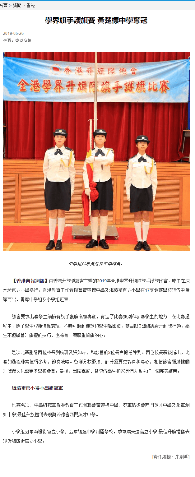 學界旗手護旗賽 黃楚標中學奪冠