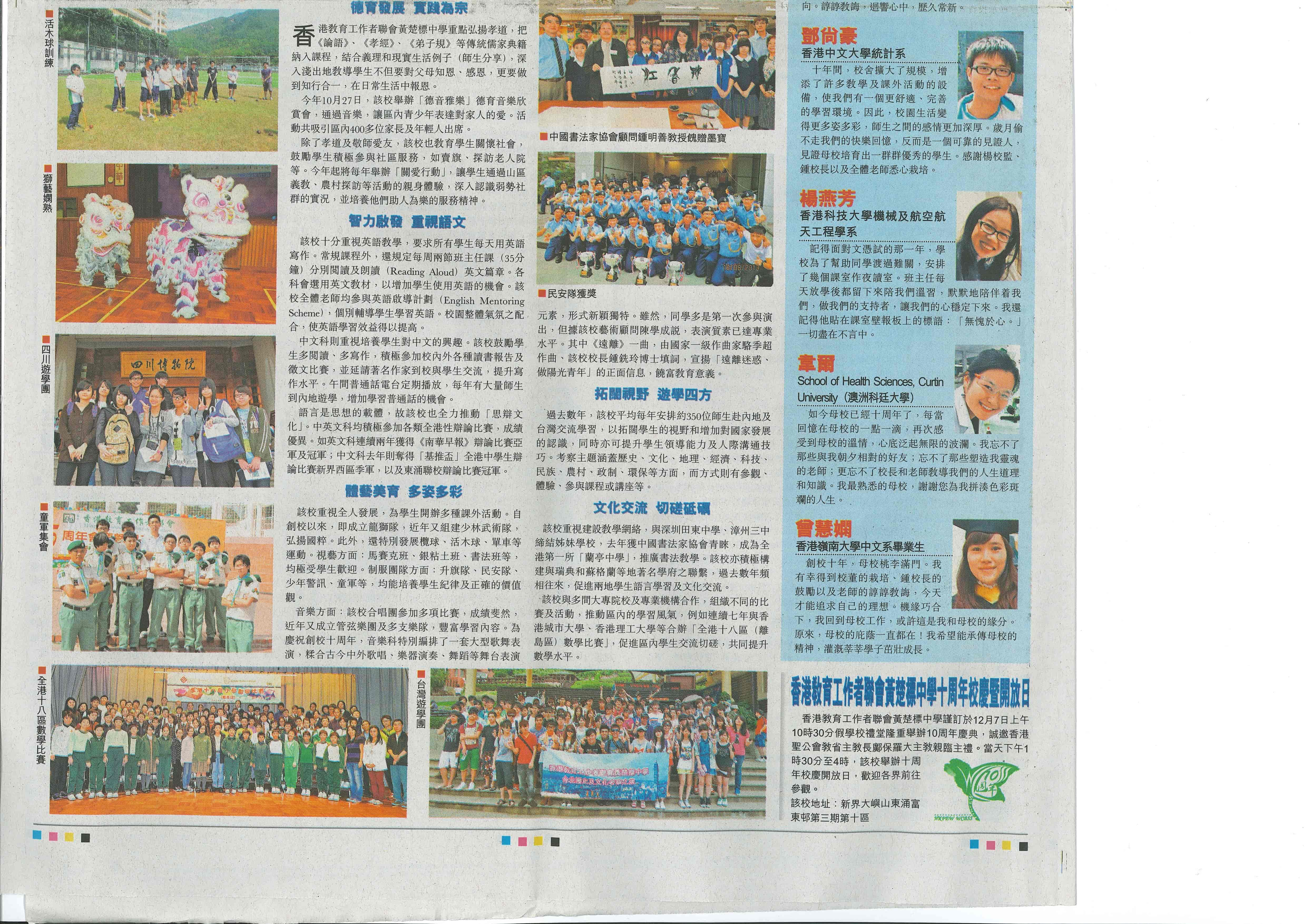 教聯會黃楚標中學十週年校慶暨開放日(文匯報 07/12/2013)