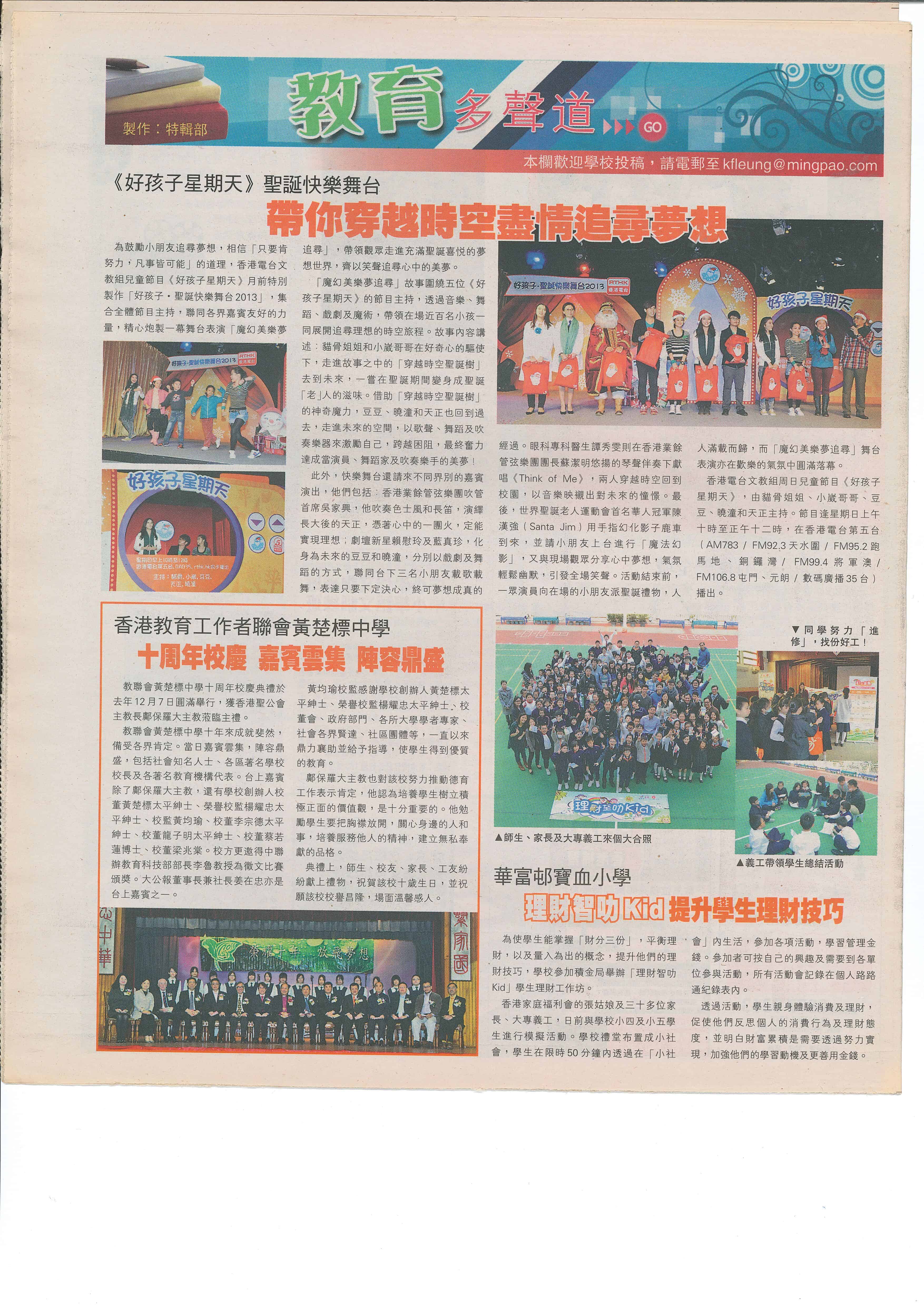 教聯會黃楚標中學十週年校慶暨開放日(文匯報 07/12/2013) :下一篇