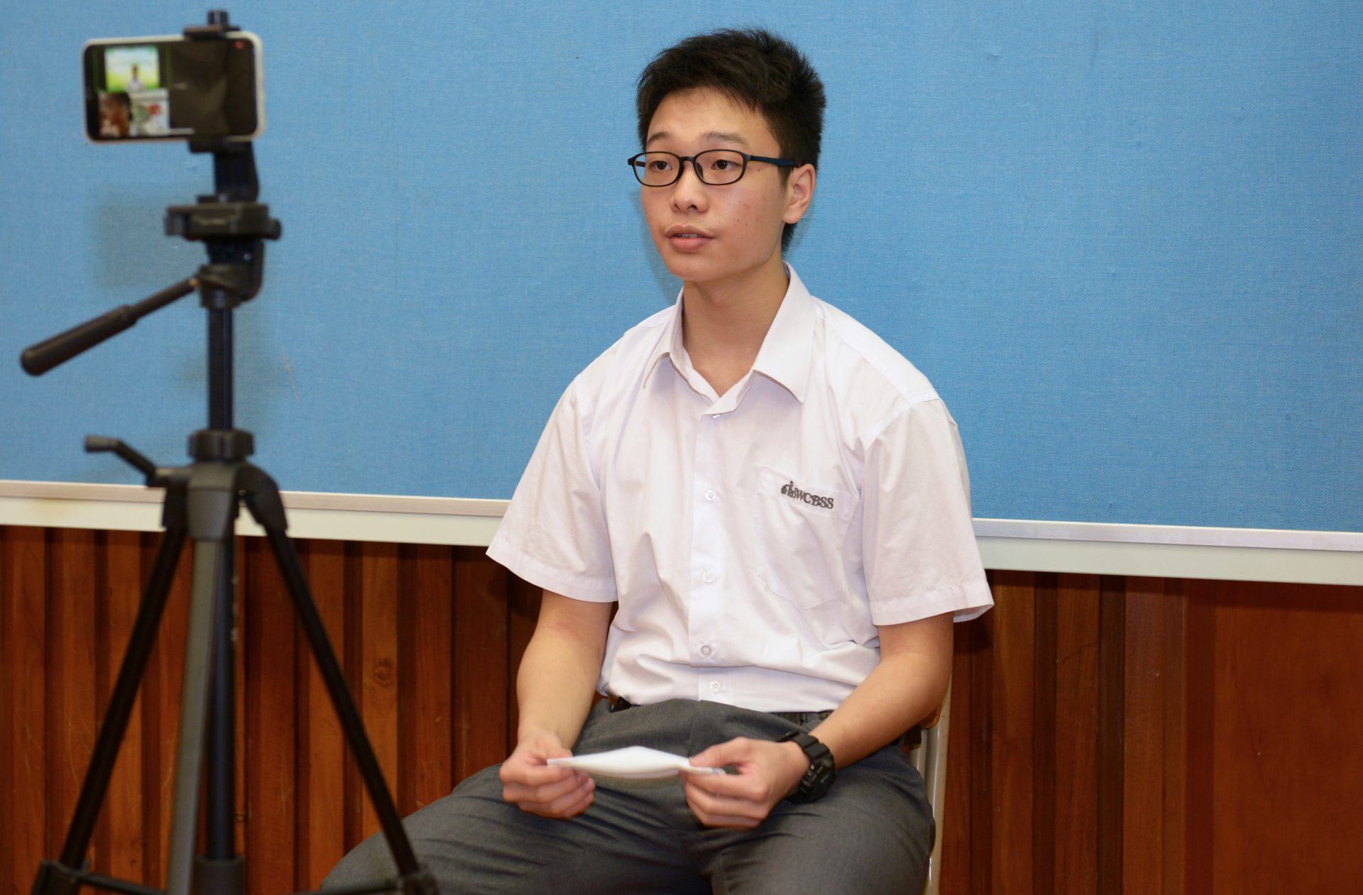 學生代表中五甲班李澤銘分享疫境下的學習心得