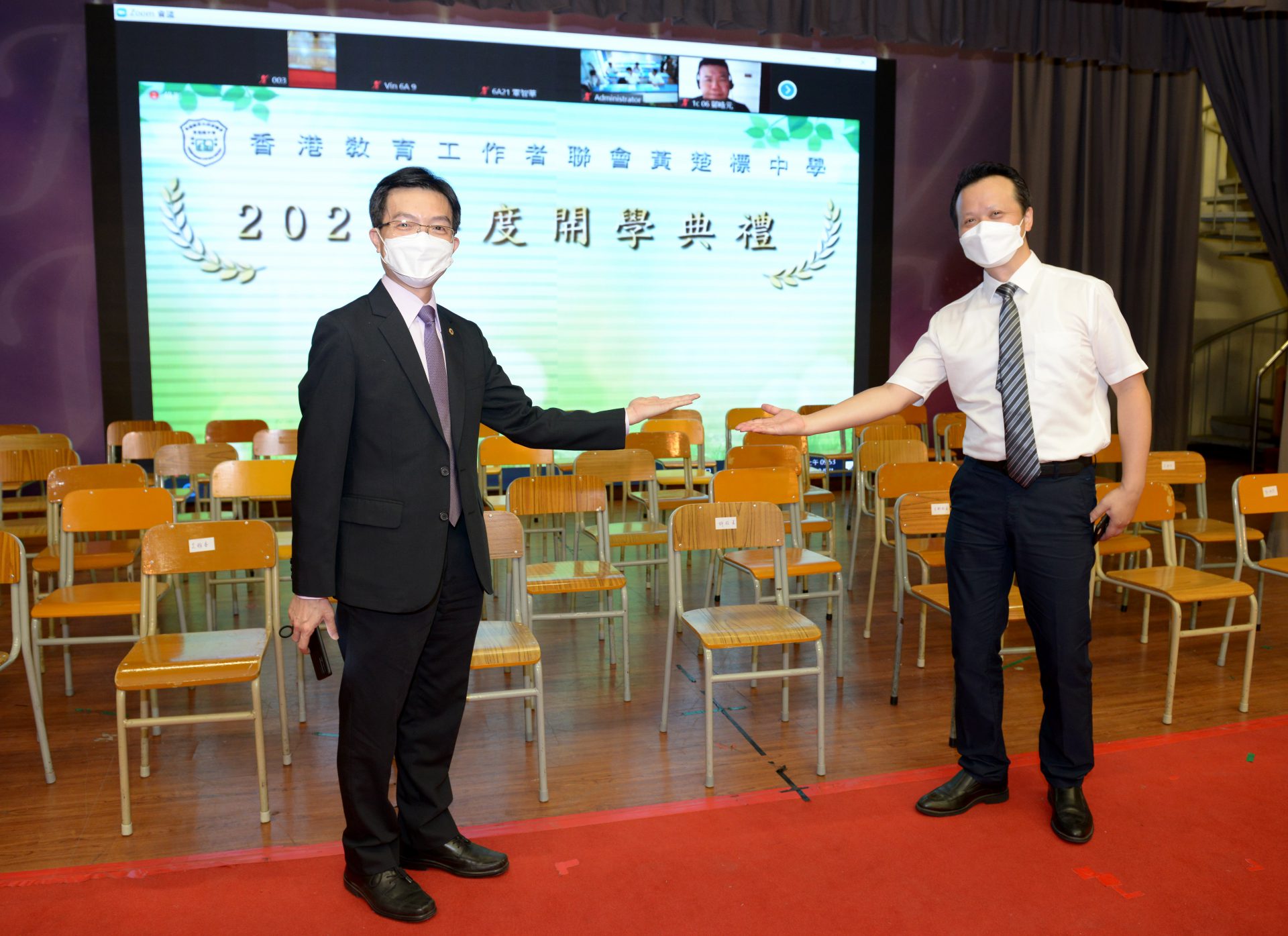 許振隆校長與王益鈞副校長在這場特殊的開學典禮下合影留念