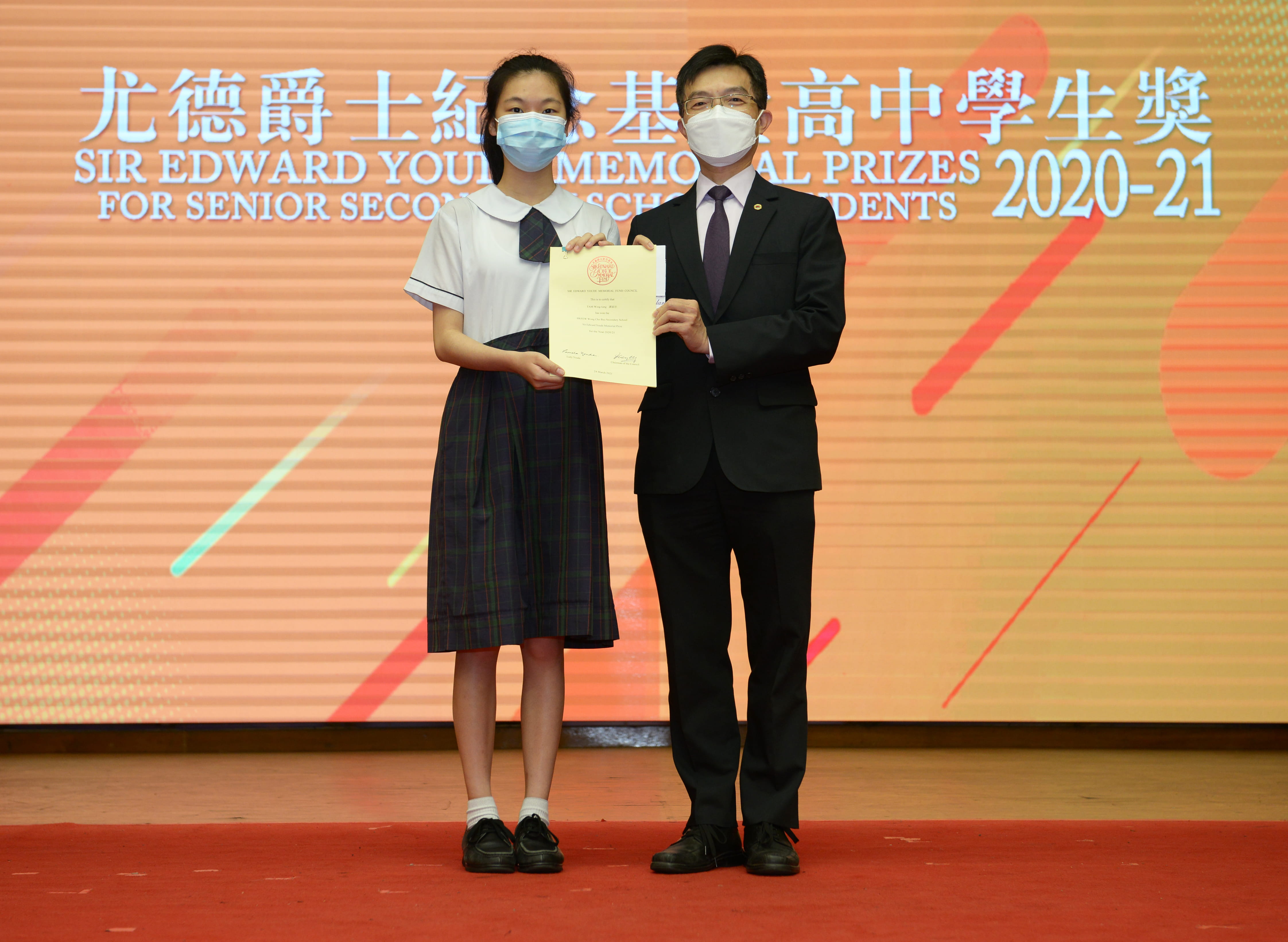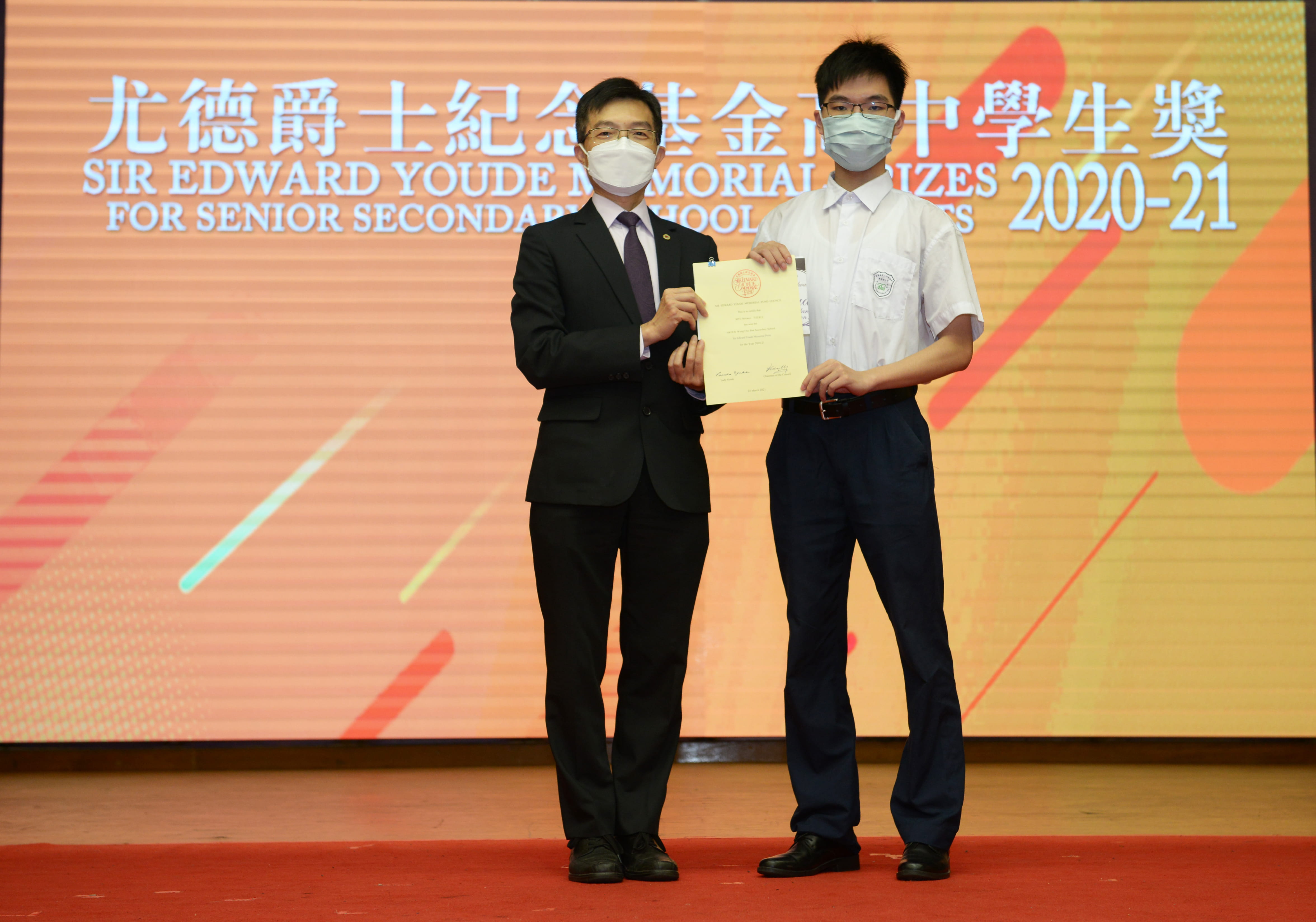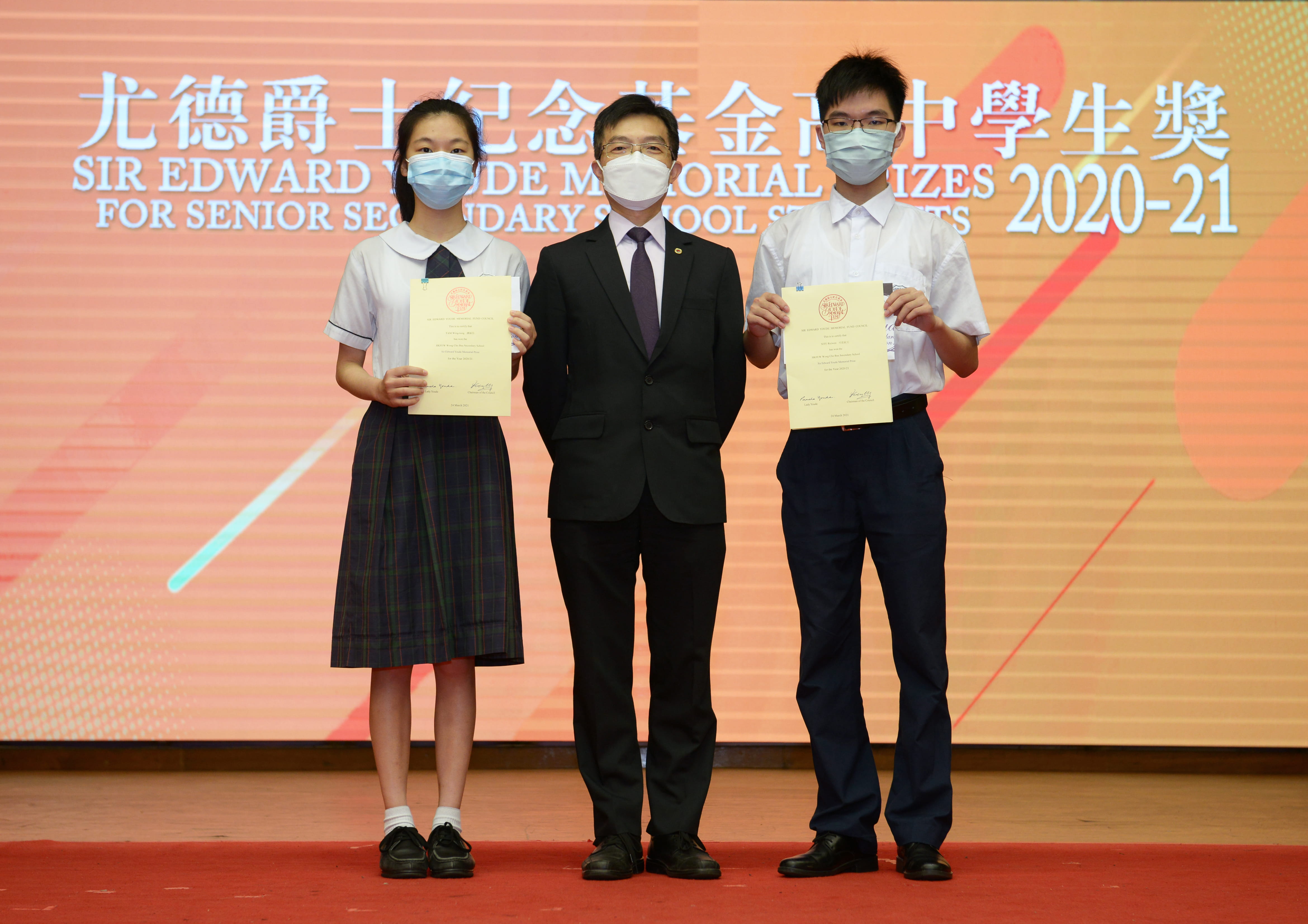 4月16日,我校6A班同學司徒銳文、譚穎彤分別獲頒「尤德爵士紀念基金高中學生獎」,獎勵他們在校期間