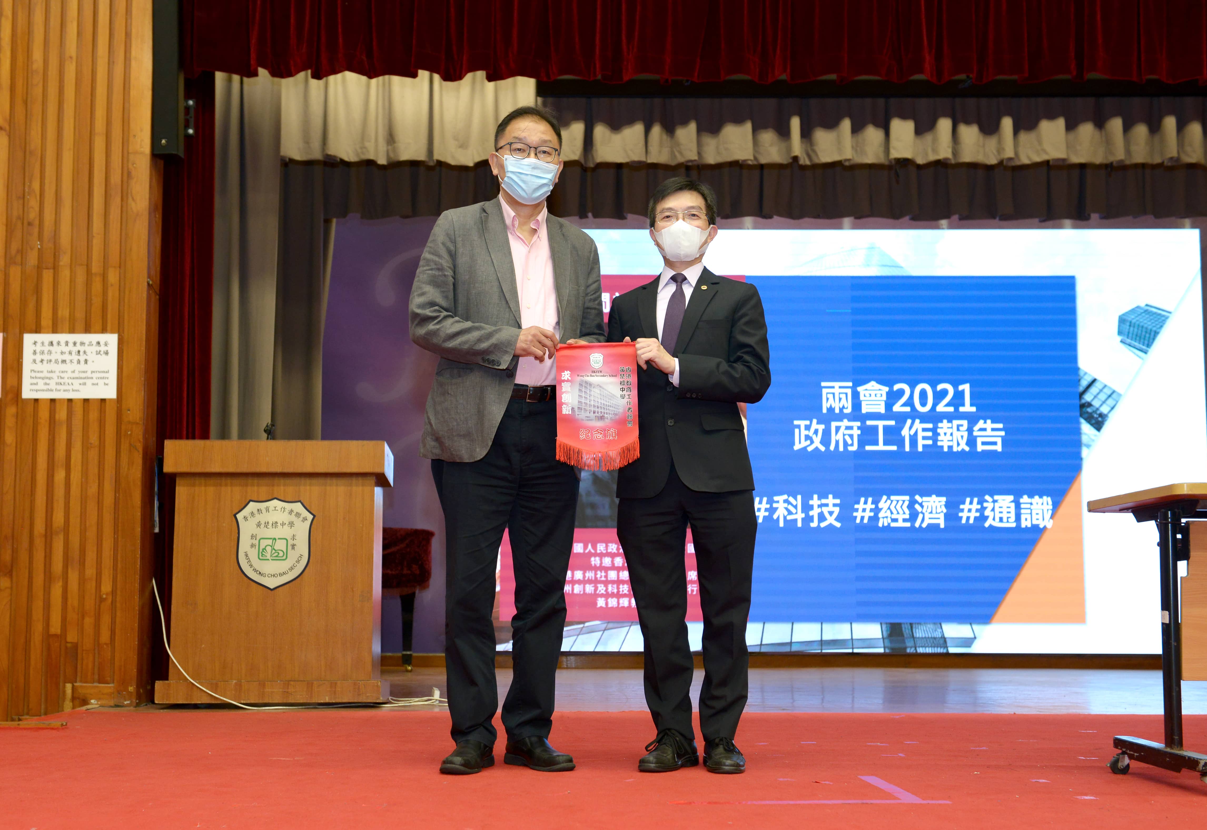 黃錦輝先生分享了他在今年兩會的所見所聞,講述了國家近年的科技創新和領先科技,並勉勵同學們學習的時候要勤於思考、善用科技。