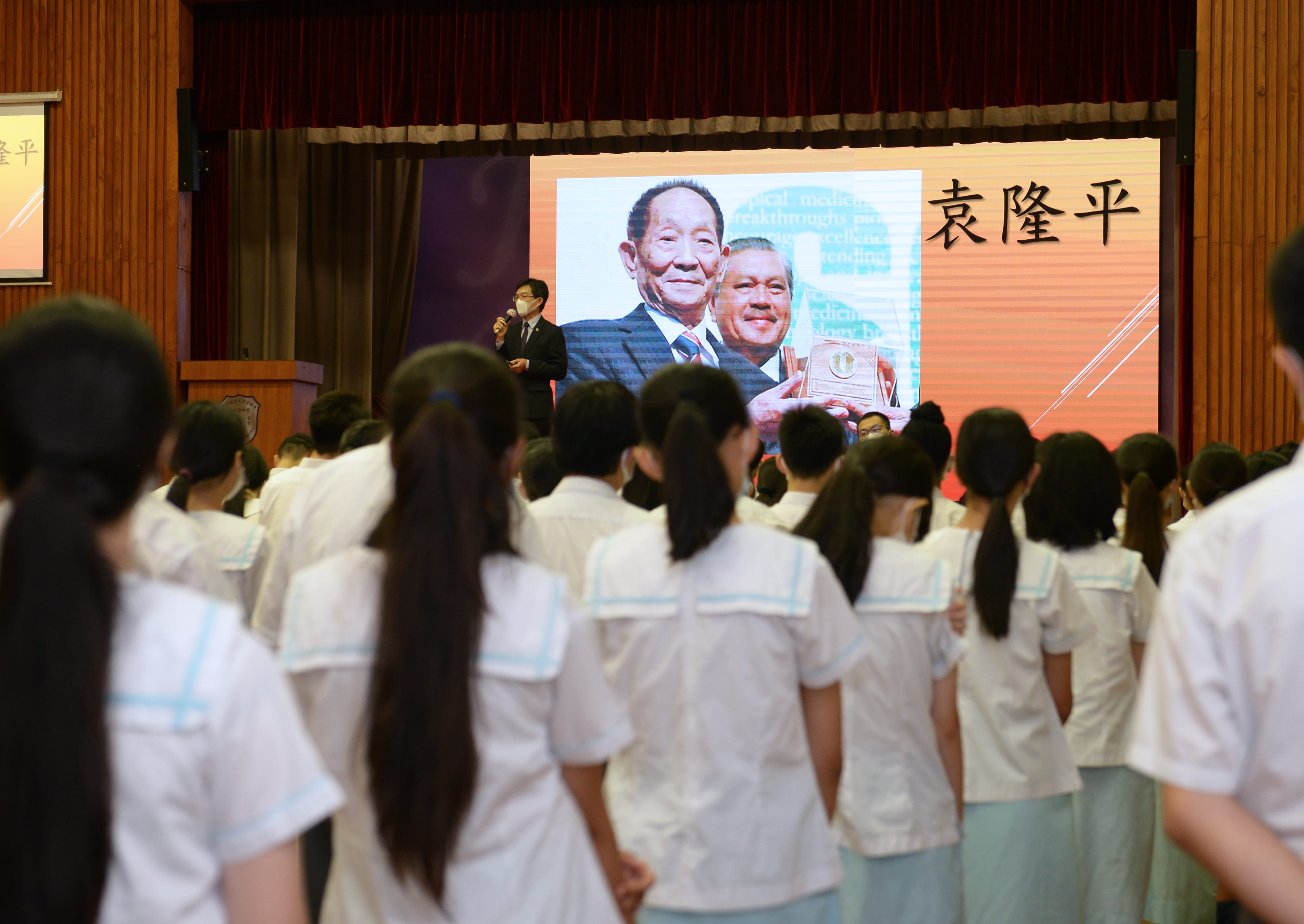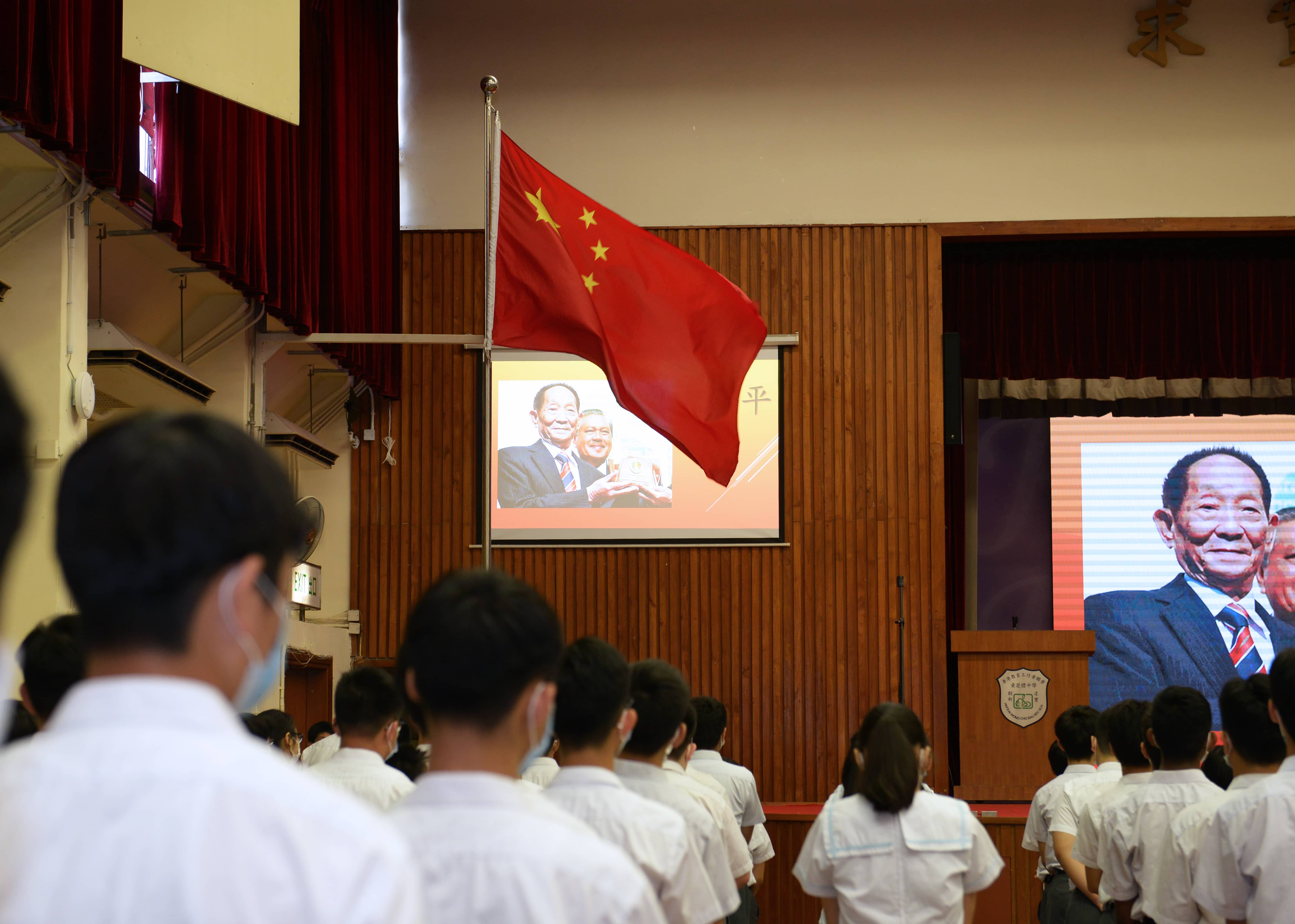 5月24號早會顯得特別莊嚴而肅穆。升旗禮過後,許振隆校長進行「國旗下的講話」,和同學一起緬懷「雜交水稻之父」袁隆平。校長分享了袁隆平談及「成功」的秘訣,即「知識、汗水、靈感、機遇」八個字,鼓勵學生學習袁隆平腳踏實地鑽研科學技術的精神。