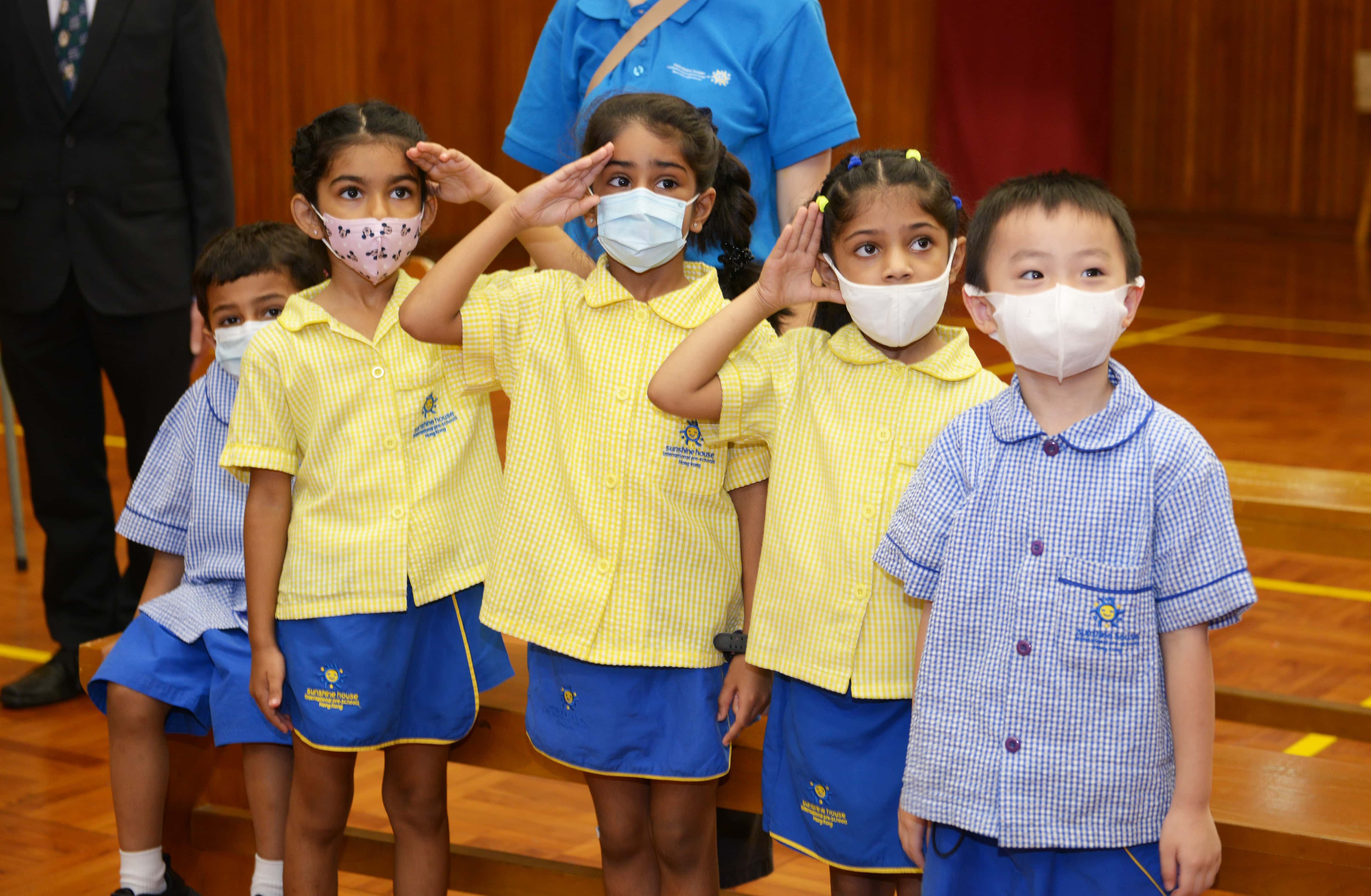 6月17日,我校邀請區內幼稚園學生來我校體驗升旗禮,共同慶祝香港回歸祖國24週年。