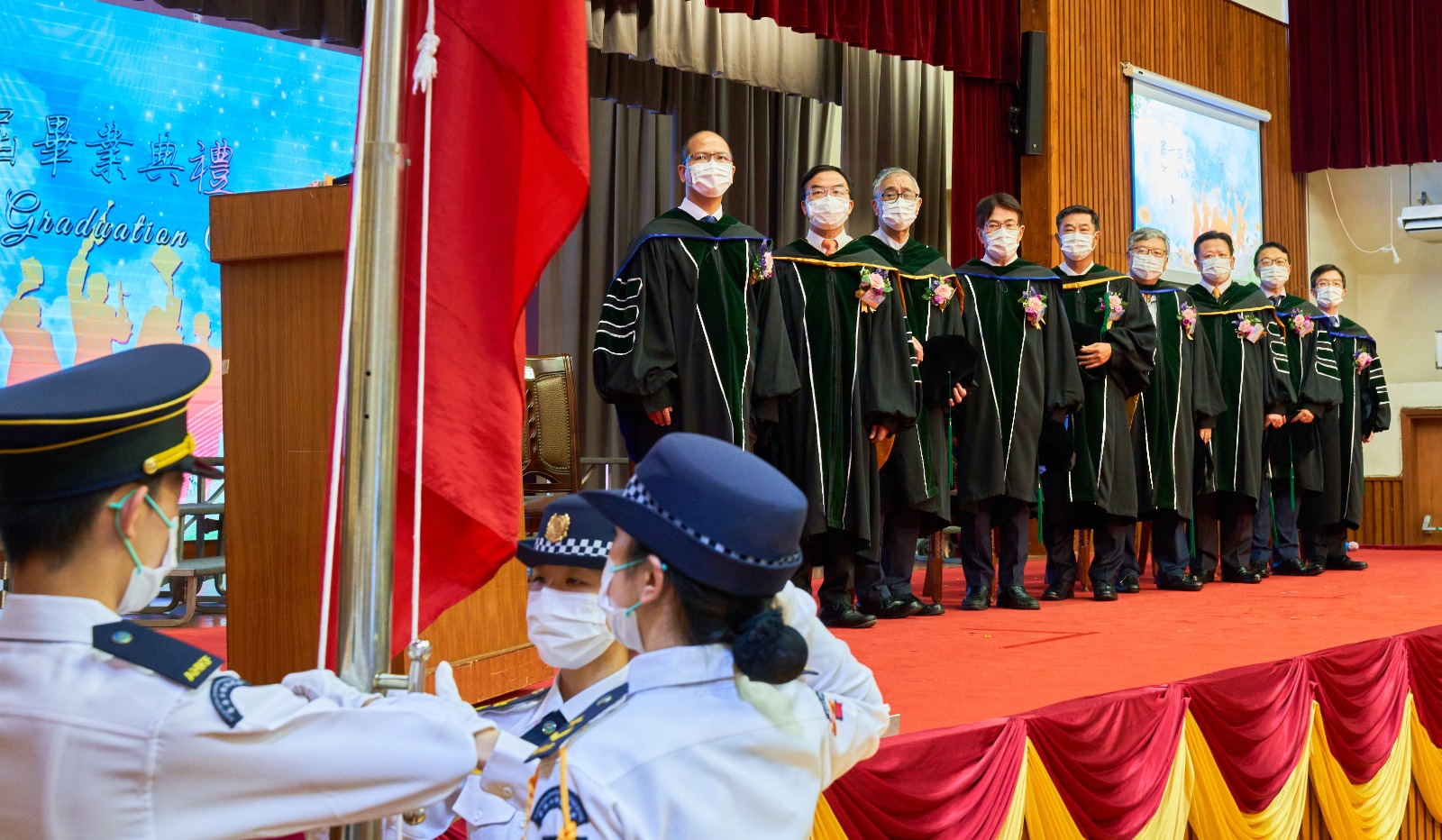 典禮在雄壯的國歌聲中拉開了序幕。首先,我校校監黃均瑜太平紳士致辭,指今屆畢業生經歷了不少挑戰,但這些挑戰其實是難得的學習機會。他勉勵畢業生珍惜這些經驗,日後無論遇到甚麼突如其來的情況,都要持守正道、堅定信念,視挑戰為歷練,永不放棄。他也提醒學生要常懷感恩之心,時刻感謝父母、師長、社會、國家,以及身邊幫助過自己的人,讓內心更加富足。