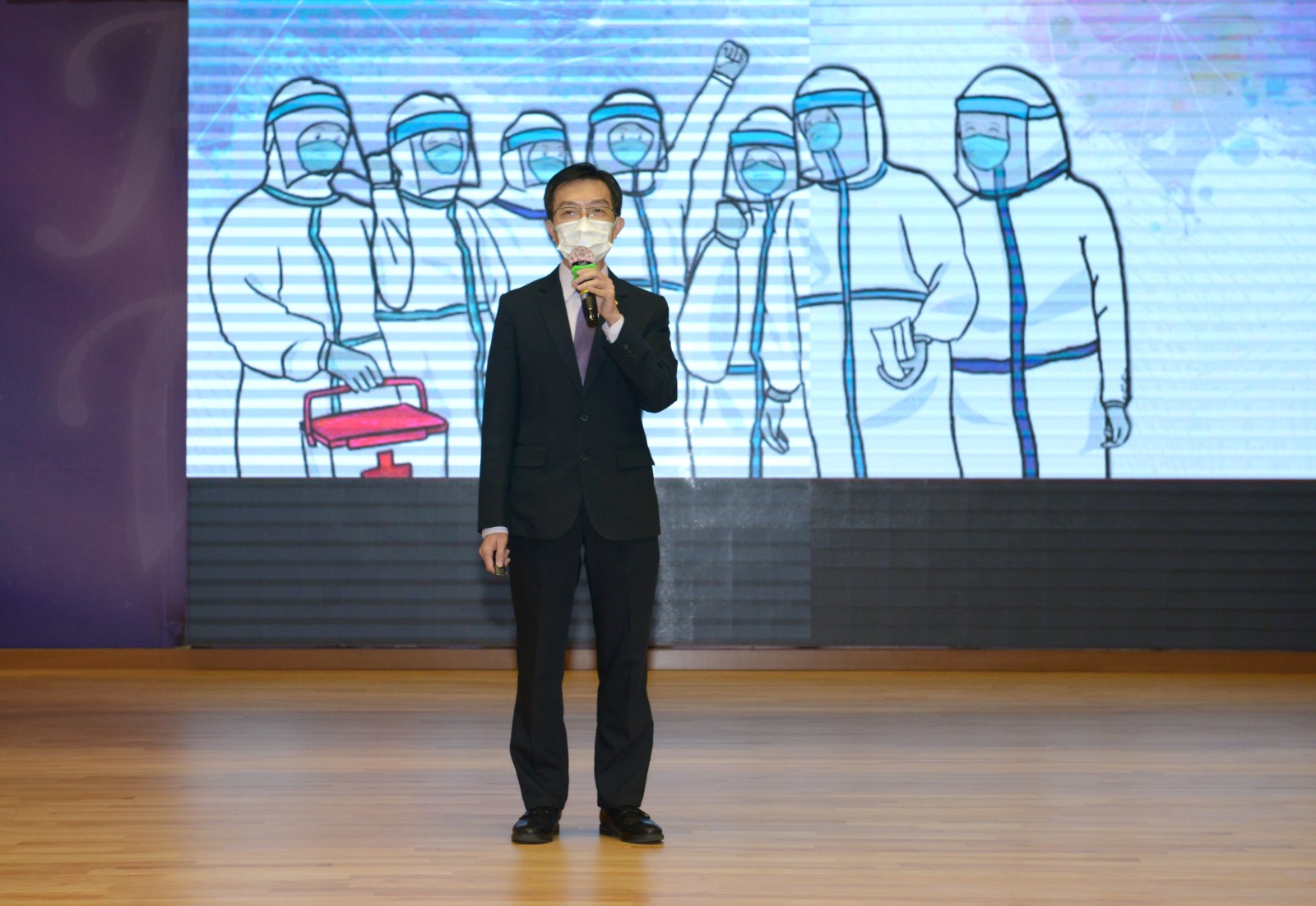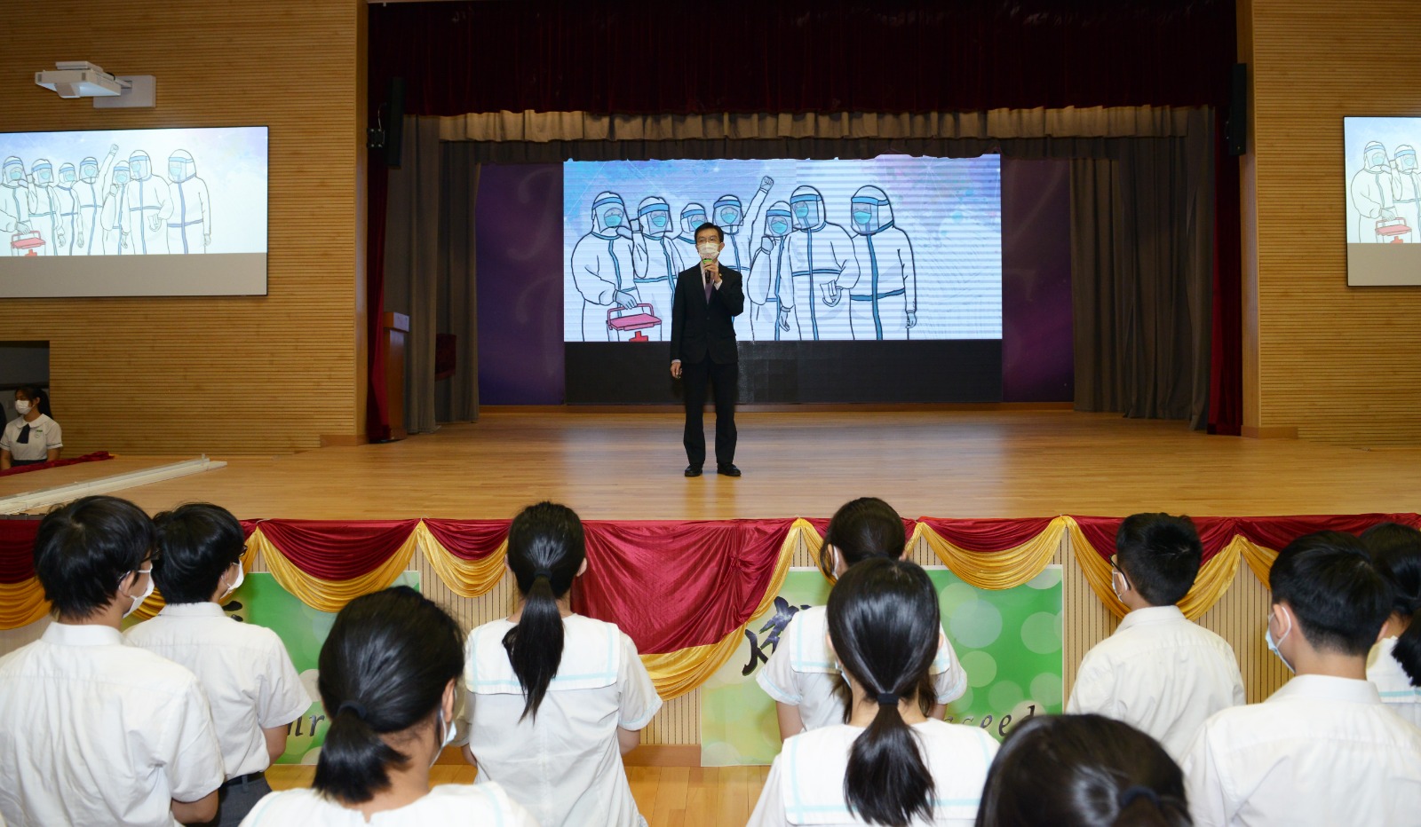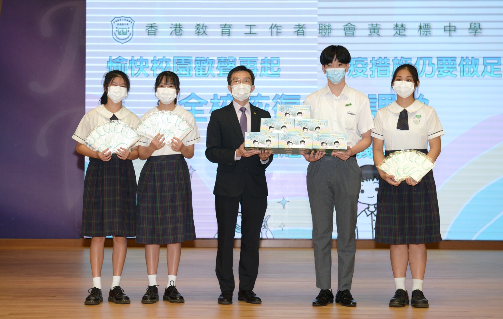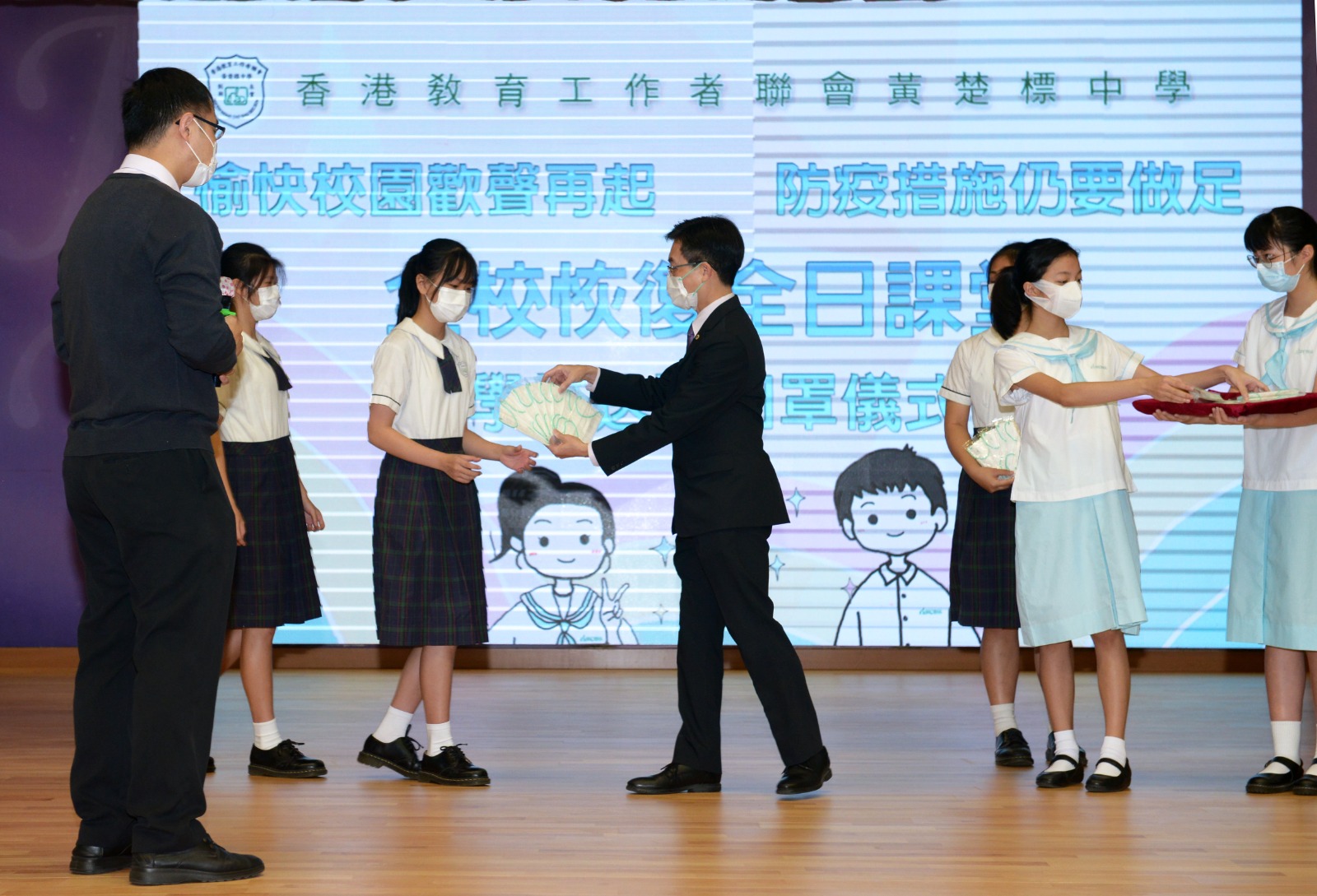 2021年11月1日,全校恢復全日面授課程。今日早會,師生在禮堂舉行了隆重的學校贈送口罩儀式,許振隆校長向學生代表贈送口罩,並鼓勵大家在全日上課時間,防疫措施仍然要做足。