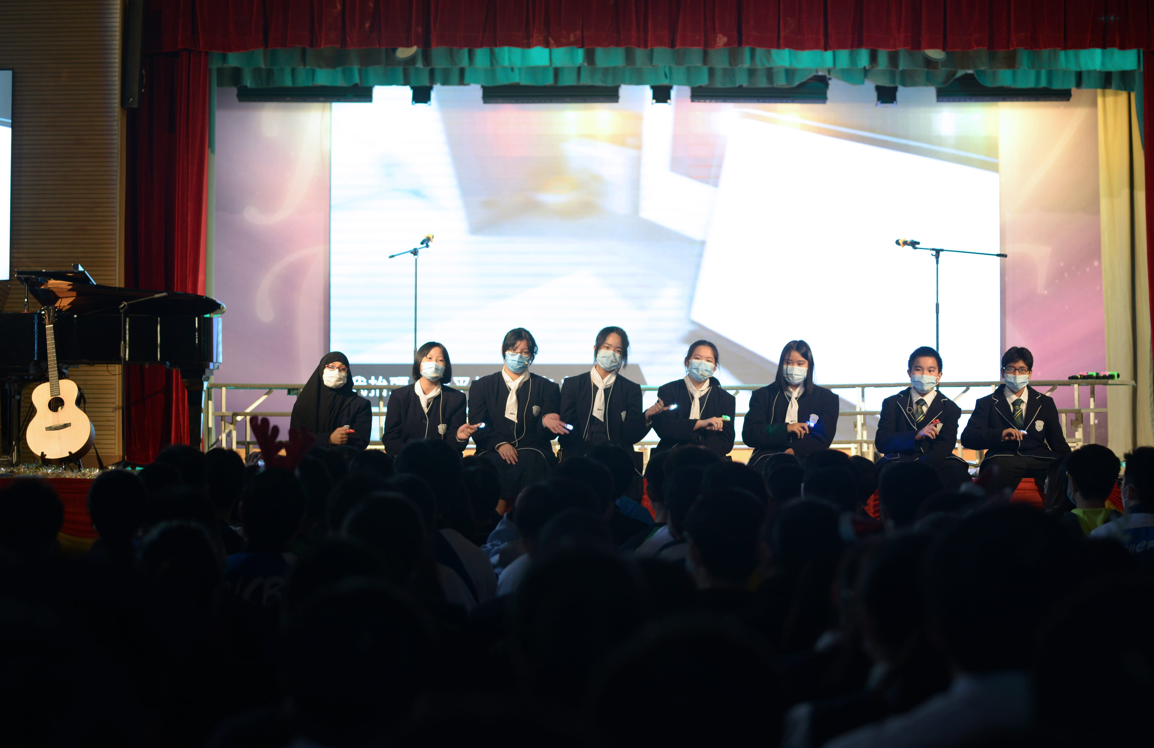 班際及社際歌唱比賽是我校的傳統項目,去年因為疫情停辦。闊別兩年,12月17日終於圓滿舉行!全校同學都非常興奮,從早會之前,就開始忙過不停,有準備活動的、有綵排練習的、有佈置打扮的,各有不同的崗位,相同的是大家都充滿期待,而且都是自發參與的,讓人感動!