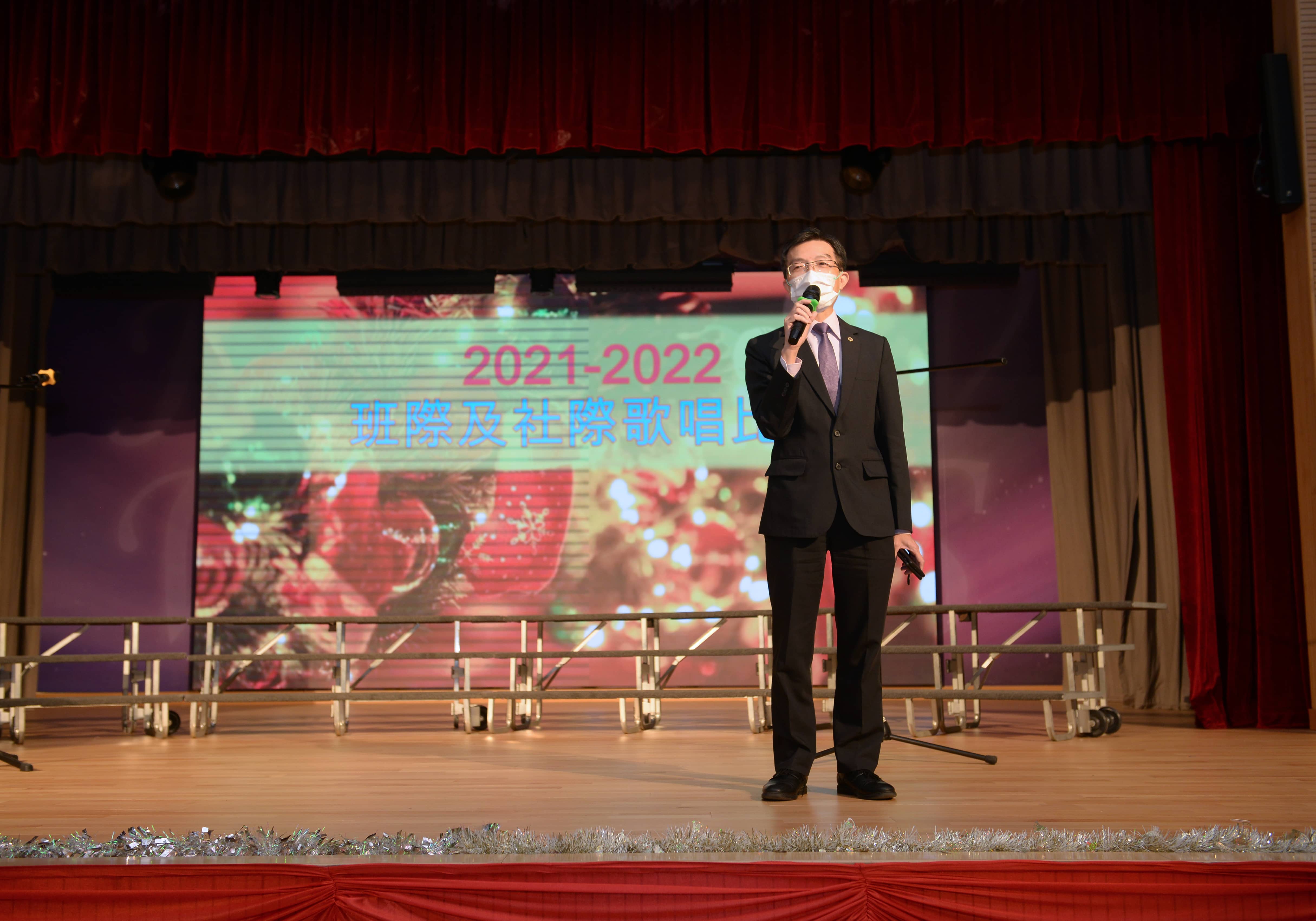 活動開始了!許校長致辭引用〈詩大序〉「詩者,志之所之也。在心為志,發言為詩。情動於中,而行於言。言之不足,故嗟嘆之。嗟嘆之不足,故永歌之。永歌之不足,不知手之舞之,足之蹈之也。」,鼓勵同學積極投入,以表演抒發情感。比賽分為班際比賽、社際獨唱組、社際合唱組及社際師生組。班際比賽中,跨境班混合線上線下模式,讓同學可以遙距參與活動;其他班別亦合作無間,盡顯深厚的同窗情誼。參賽者水平之高已經不在話下,更重要的是全場氣氛高漲,喝采聲、歡呼聲不絕於耳,台下同學不時與表演者一起放聲歌唱,足見他們對這次活動的熱愛!