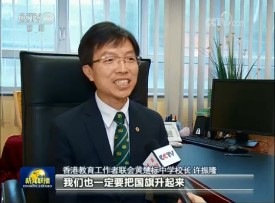 2日上午,香港教育工作者联会黄楚标中学举行开学典礼,约500名学生参加了庄严的升旗仪式。