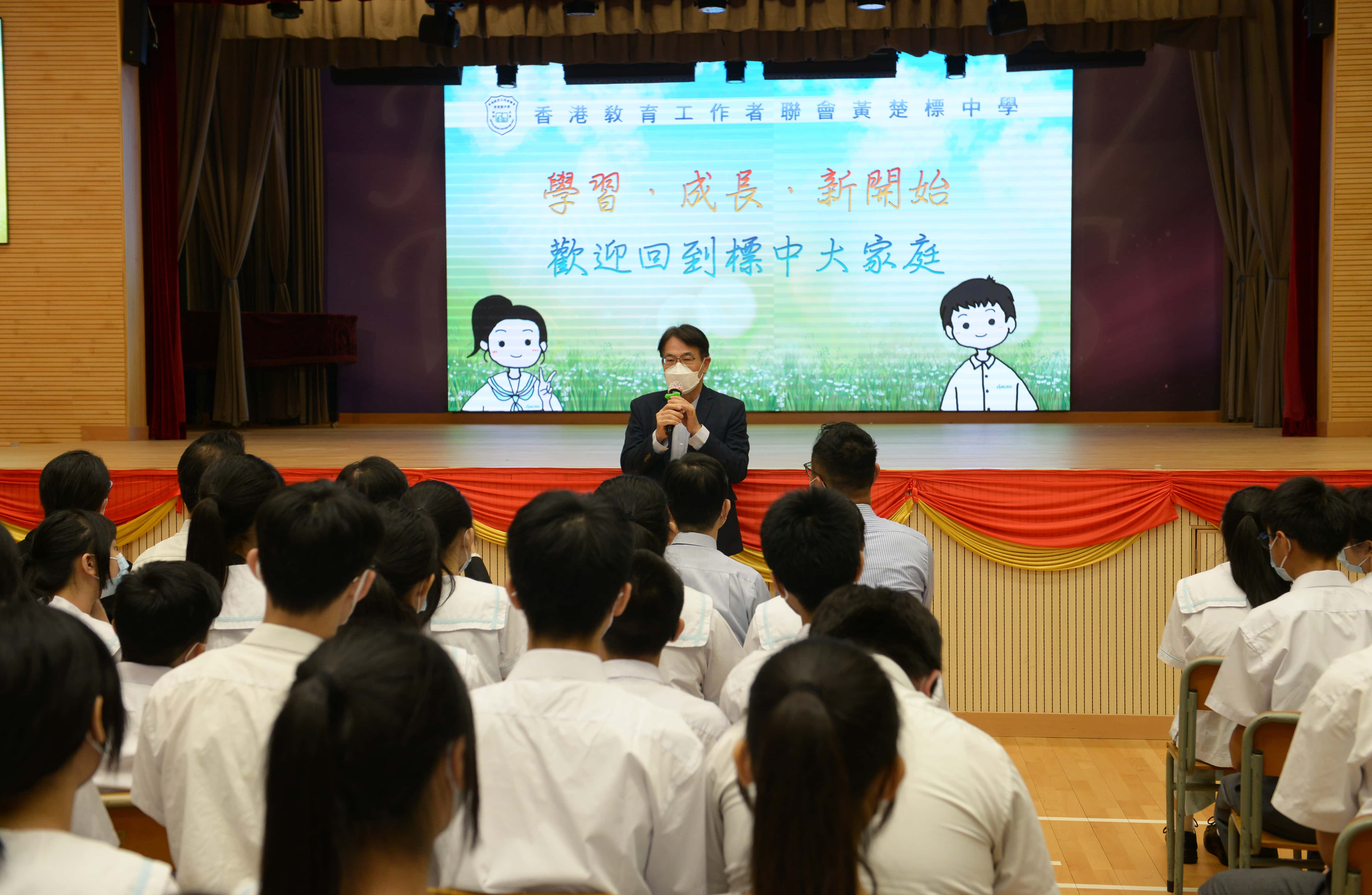 開學第一課,黃均瑜校監勉勵同學們新學年新氣象,更要刻苦讀書,勇於追求自己的夢想。許振隆校長勉勵同學們要敢想,更要勇於奮鬥,才能把夢想實踐出來。並希望我們時刻緊記習主席的話:幸福是奮鬥出來的!