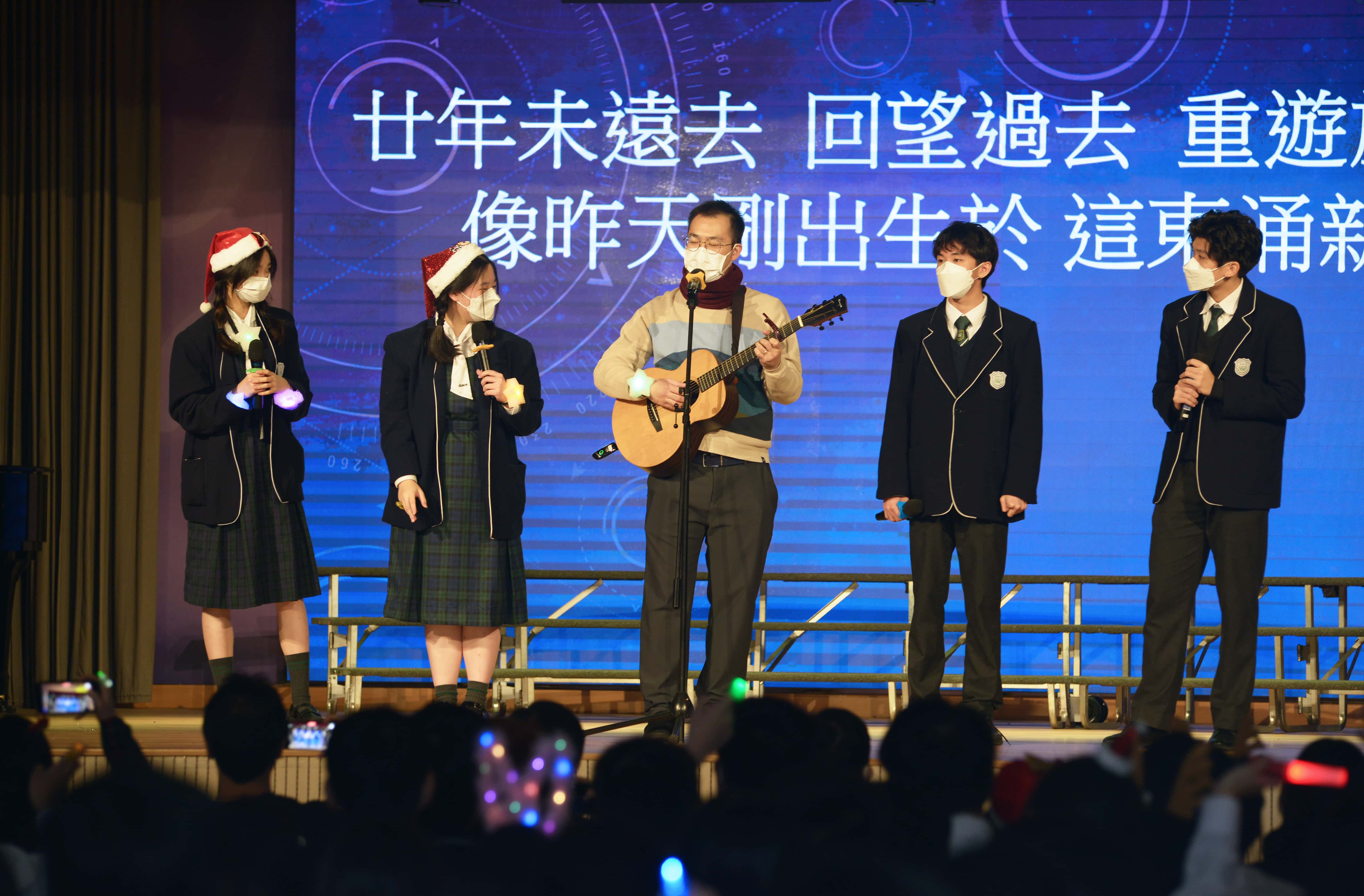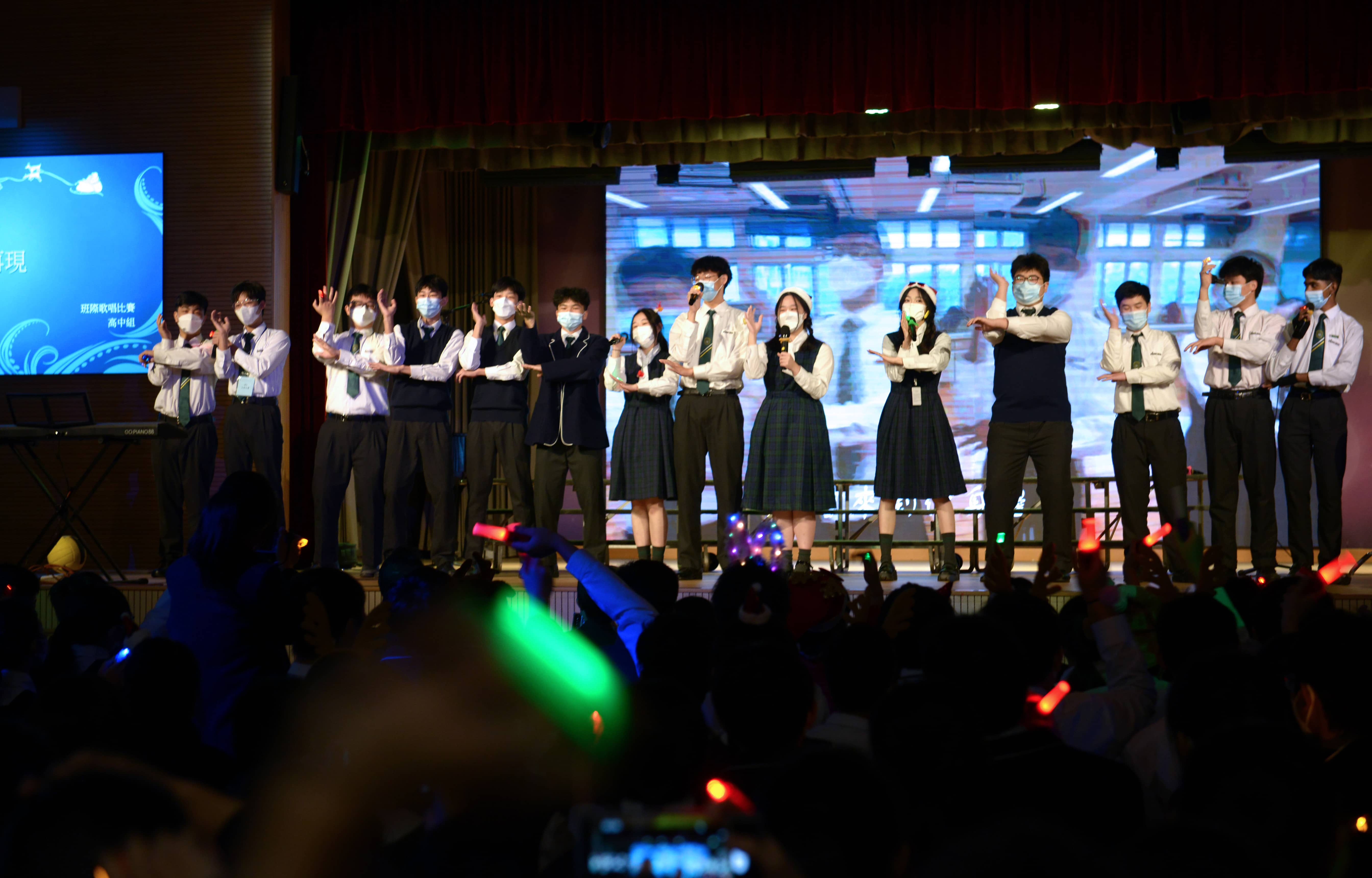 適逢本年度是學校創校的二十週年,劉雋峰老師與學生獻唱了二十週年校慶主題曲;中六學生面對文憑試,必須立志登高、奮發向上,有見及此,樂隊演唱《自由意志》為中六學生打氣。活動在一片熱烈的氣氛中結束,期望明年再聚!祝大家聖誕快樂!
