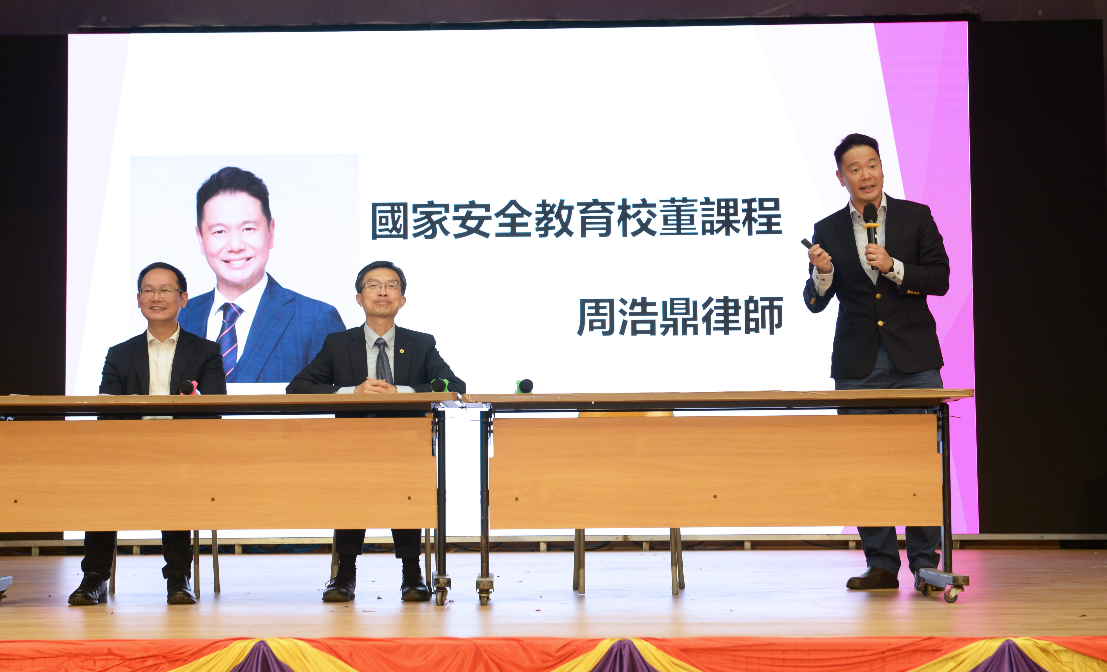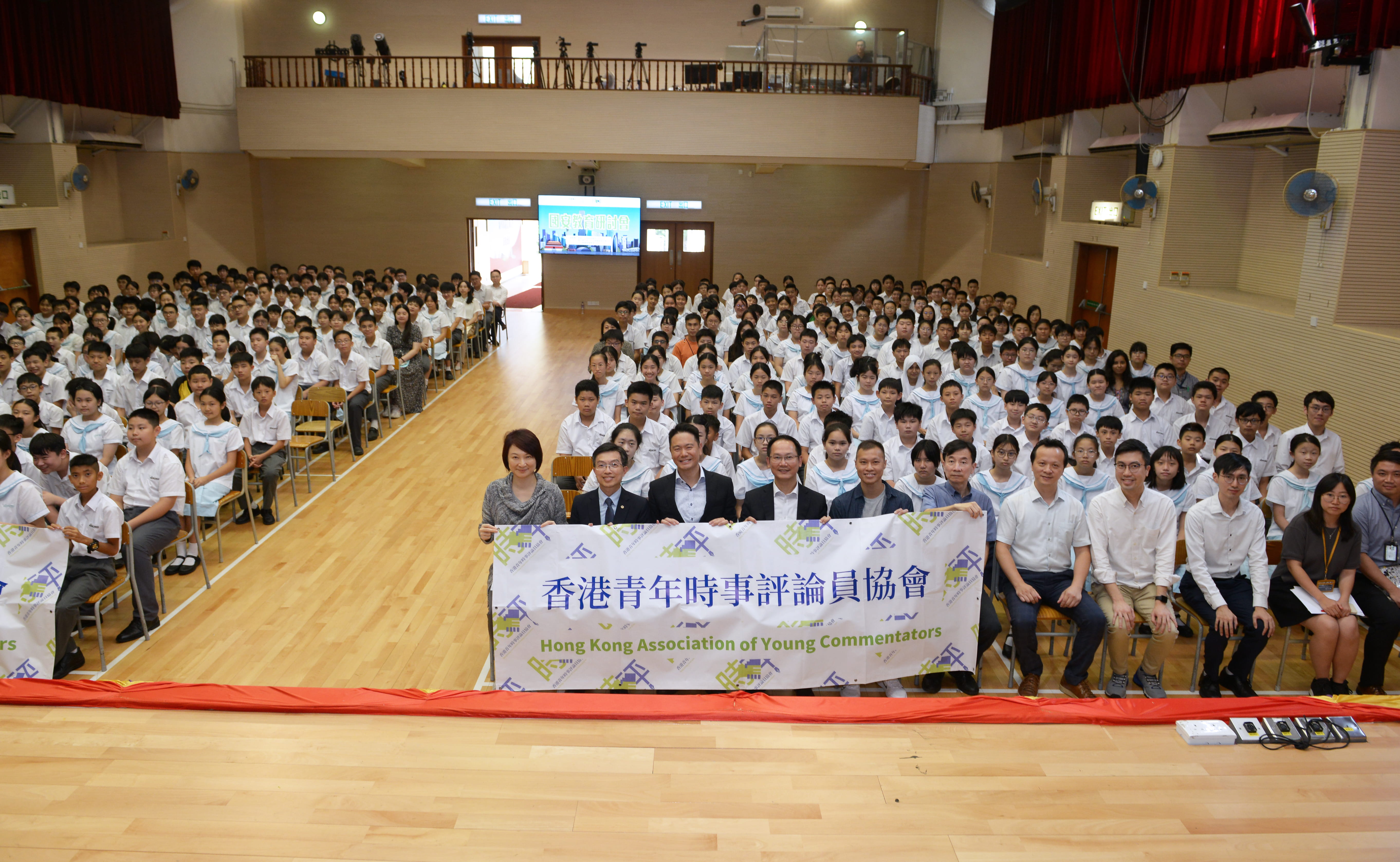今天,我校與香港青年時事評論員協會共同為初中學生主辦「國安教育研討會」,當中邀請到港區人大委員李慧琼議員GBS, JP、青評會主席周浩鼎議員JP及陳學鋒MH,JP蒞臨,以深入淺出的方式,探討與國安相關的內容。