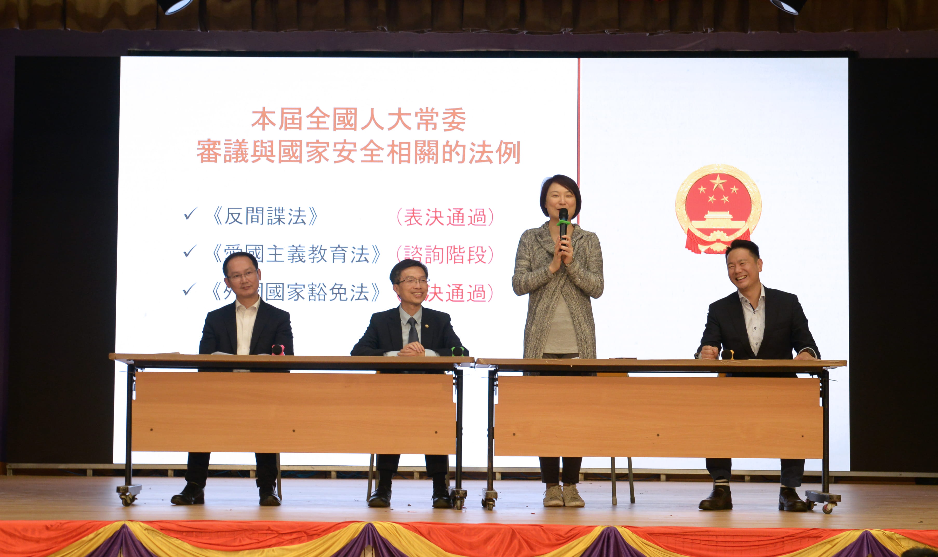 李慧琼委員首先介紹了人大職能,解釋了人大和人大常委的關係,讓學生明白國家立法和通過政策的程序;周浩鼎議員則強調維護國家安全、中國堅定走自己道路的重要性;陳學鋒議員闡明分裂國家為嚴重罪行,強調維護領土完整的重要性。