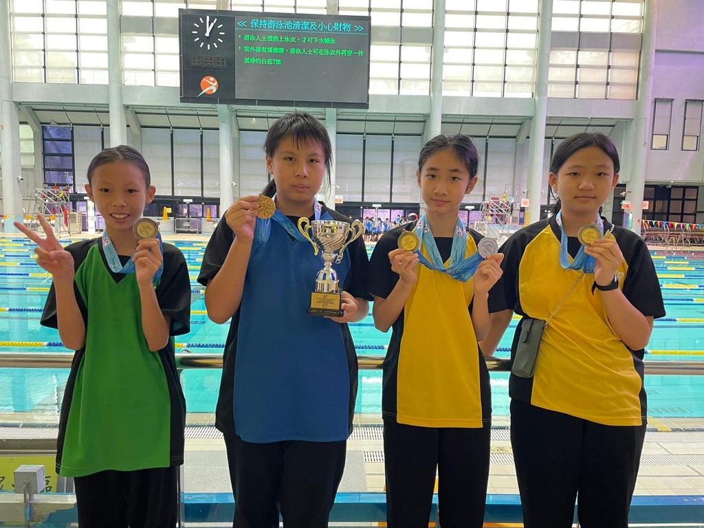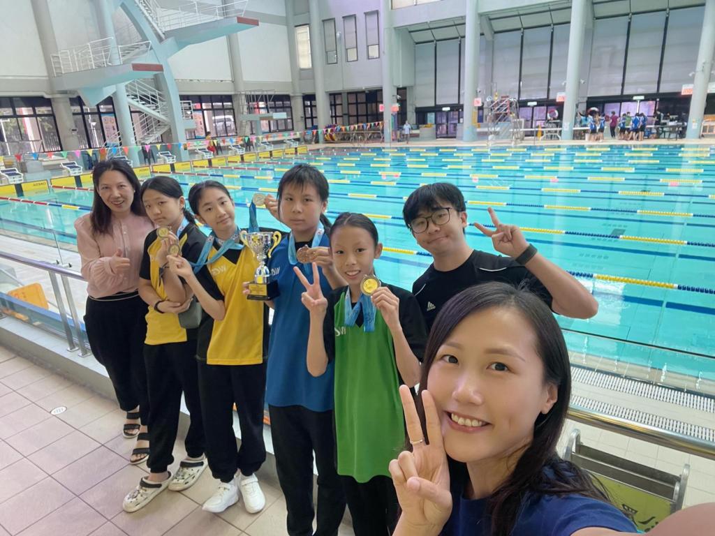 1W曾子樂、1C李雅文、邱靖煊、1E陳娜娜、李澤淇、1H高魯寧出戰23-24校際游泳比賽。當中四位女生首次參加了4x50米四色接力賽,並且以出色的表現取得了優異的成績,分別為女子丙組100米背泳冠軍、50米背泳亞軍、100米自由泳殿軍、50米蛙泳季軍、4x50米四色接力季軍、女子丙組團體第五名。