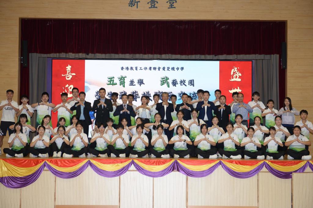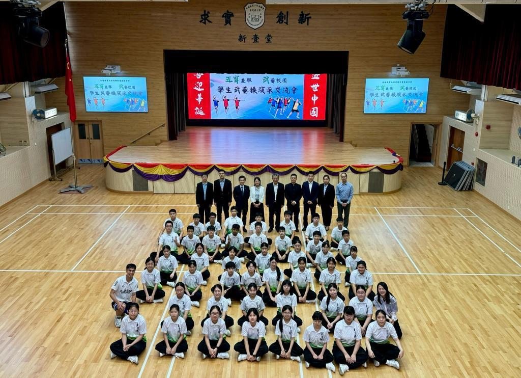 我校參與馮燊均國學基金會主辦的五學並舉之武藝校園計劃,因師生積極投入並全力支持,獲國家教育部屬下中國教育基金會組織的港澳訪問團訪問本校。10月18日,八位領導蒞臨本校考察和交流。來賓名單包括中國教育發展基金會團長王建光先生及其團員、國學基金會主席馮鮑俊萍院士,及五學並舉之武藝校園計劃的黃宇帆總監以及吳泳攀先生。活動中,我們通過影片向來賓講述了本校推廣五學並舉之武藝校園計劃的心路歷程,並由學生演示了武藝操和獨創的花式表演。中國教育發展基金會團長王建光先生在演辭中稱讚學生的表現,可見我校學生「武藝非凡」,於各方面均表現出色!