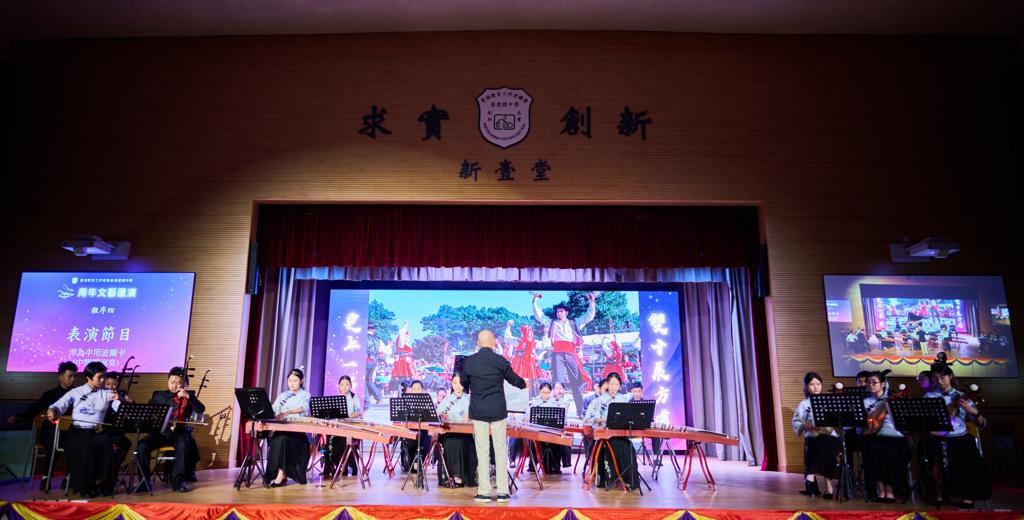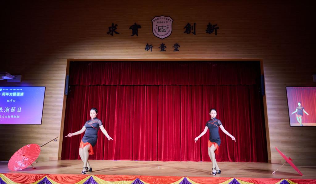 其後是本校師生表演古箏二重奏──「氣勢磅礴戰台風」,當中李婉婷老師及朱斯羽同學合奏名曲《戰台風》。而「輕歌曼妙拉丁舞」,由小學向澄同學展現迥異的拉丁舞藝。之後中樂團為我們帶來「洋為中用波爾卡」。後再由本校徐子堯及陳映朱帶來雙人拉丁舞──「活力四射舞翩翩」。最大型的是本校中樂團、管弦樂團及合唱團同學聯合登場,為我校20週年慶典獻上一首耳熟能詳的《獅子山下》。