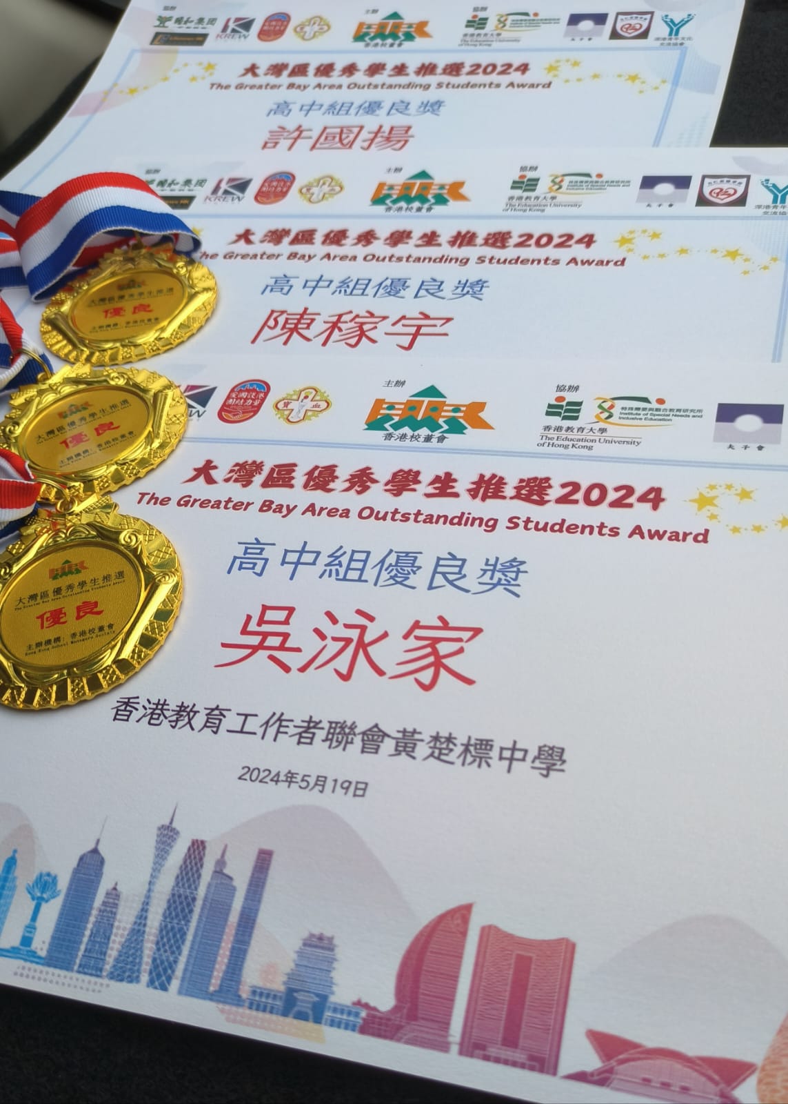 4C吳泳家、4C陳稼宇、4C許國揚獲「大灣區優秀學生推選2024」優良獎。🏆