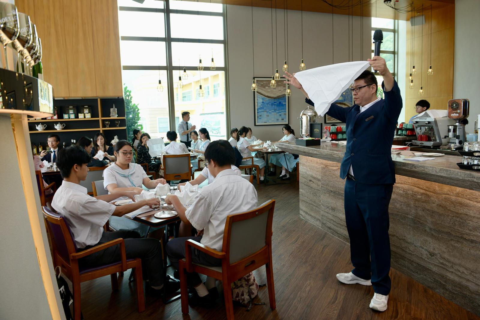 學校特別在香港愉景灣酒店舉行了「明德學堂」的啟動聚餐宴。🍲學生們和老師們一同品味美味的午餐,同時,酒店特意安排了一個教授餐桌禮儀的環節。🎩這次環節不僅讓學生們學習到西式餐桌禮儀的細節,同時也讓他們在迷人愉景灣海景的環境中享受美食,這絕對是一段難忘且極為寶貴的時光。🤩