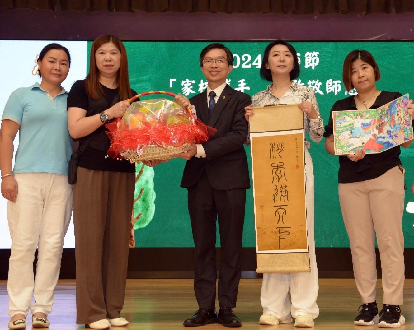 家長教師會一眾委員、學生代表4B梁晋華及2E徐子堯,分別以果籃及親自繪製的心意咭,向各位老師表達崇高的敬意和最真摯的感謝。🙏🏻🙏🏻🙏🏻