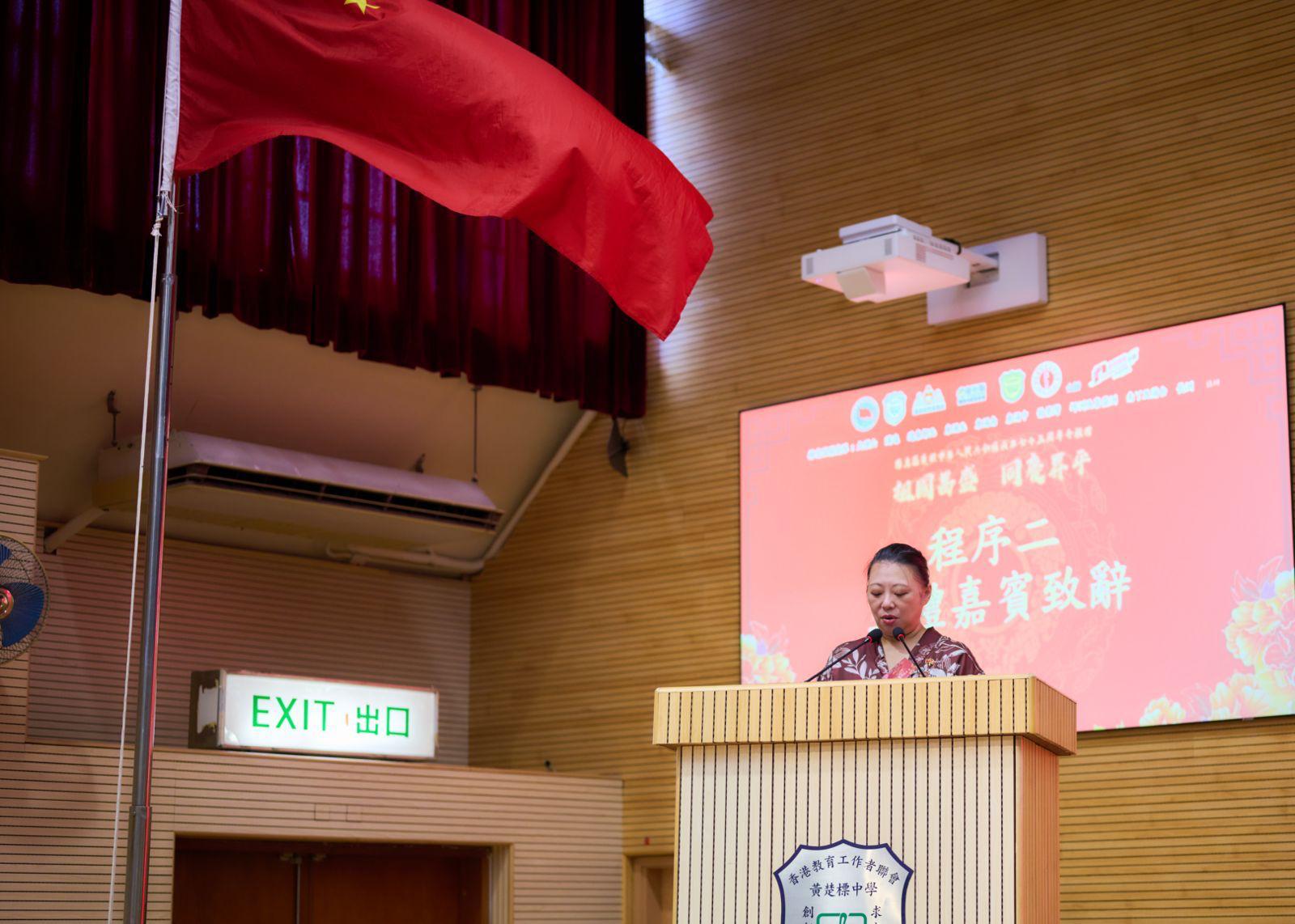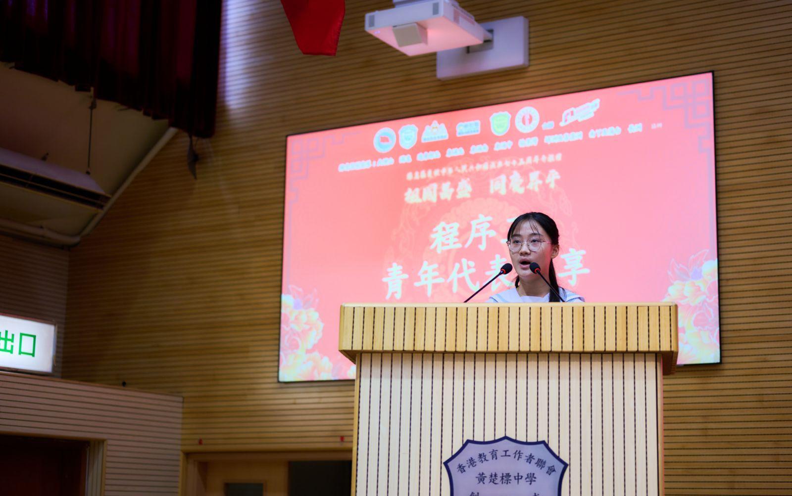 離島民政事務專員楊蕙心太平紳士、新界社團聯會離島地區委員會主席祝慶台先生分別致辭,分別強調香港要把握好機遇;青年代表本校5C班許國揚發言,表示我們這一代正享受著祖國發展的成果,我們有責任也有使命,要傳承先賢的精神,為國家發展貢獻出自己的力量。