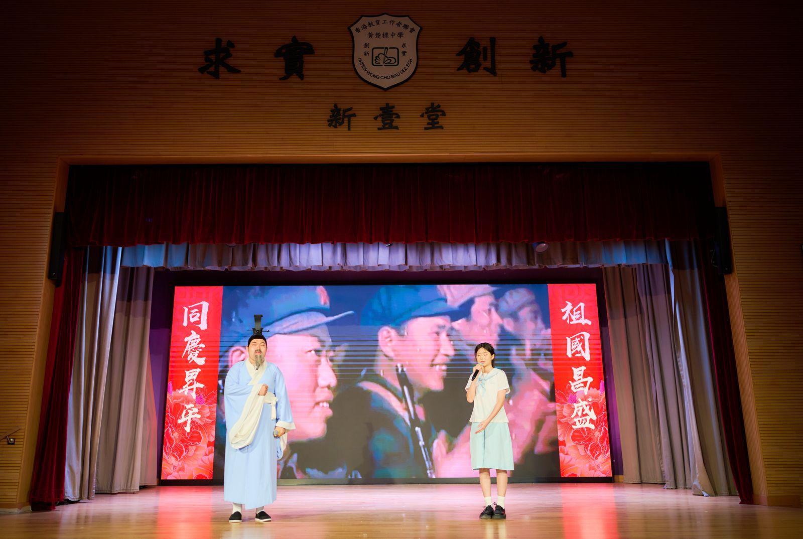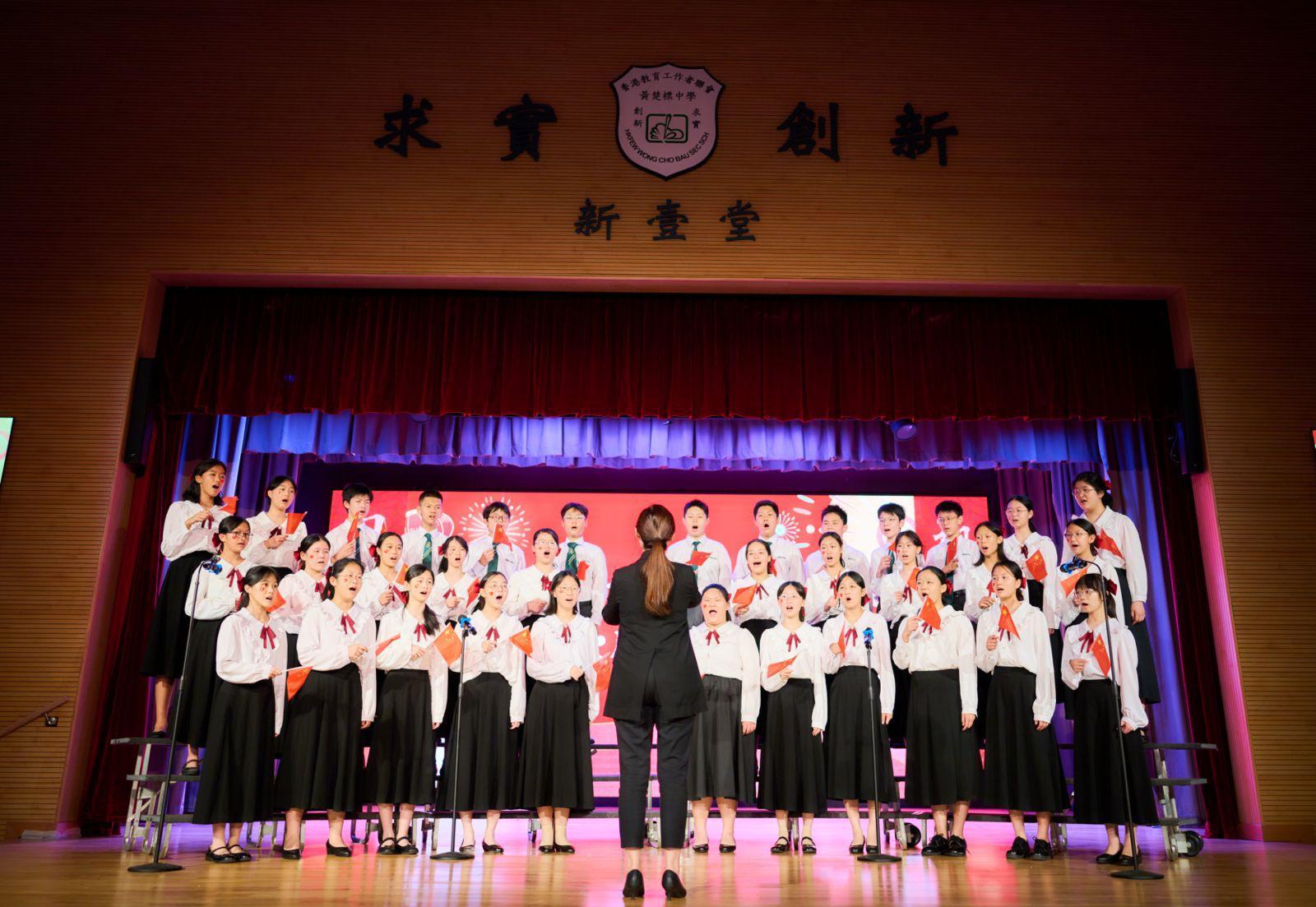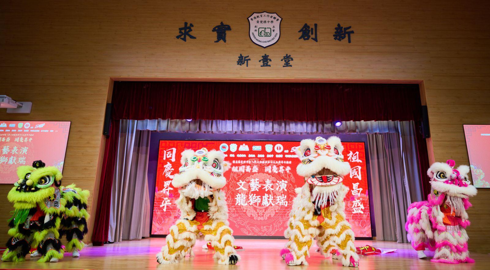 為祝賀中華人民共和國成立75周年,我校中小學的學生合作獻上精彩萬分的龍獅表演,本校學生更朗誦《問天•求索》,展現我國航天事業輝煌的成就。最後,我們的合唱團與全場嘉賓合唱《歌唱祖國》,典禮在澎湃激昂的歌聲中圓滿結束。