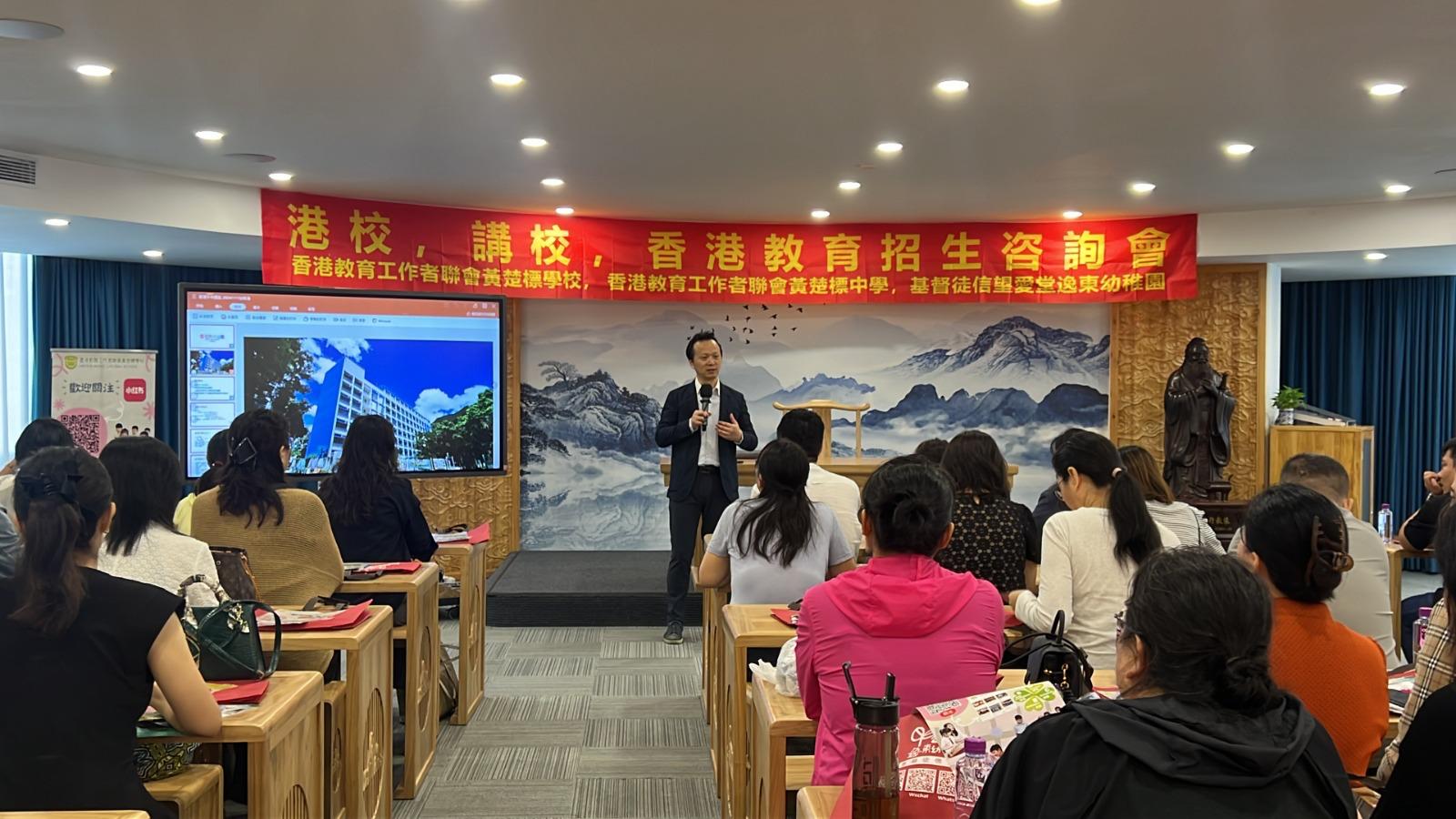 11月17日上午,我校與區內友校聯合到珠海舉辦講座,讓內地家長認識香港教育的特色與優勢。當天約有50位家長冒雨出席,期間踴躍互動,部分更即場報名申請插班本校,可見家長們對本校的教育質素充滿信心。