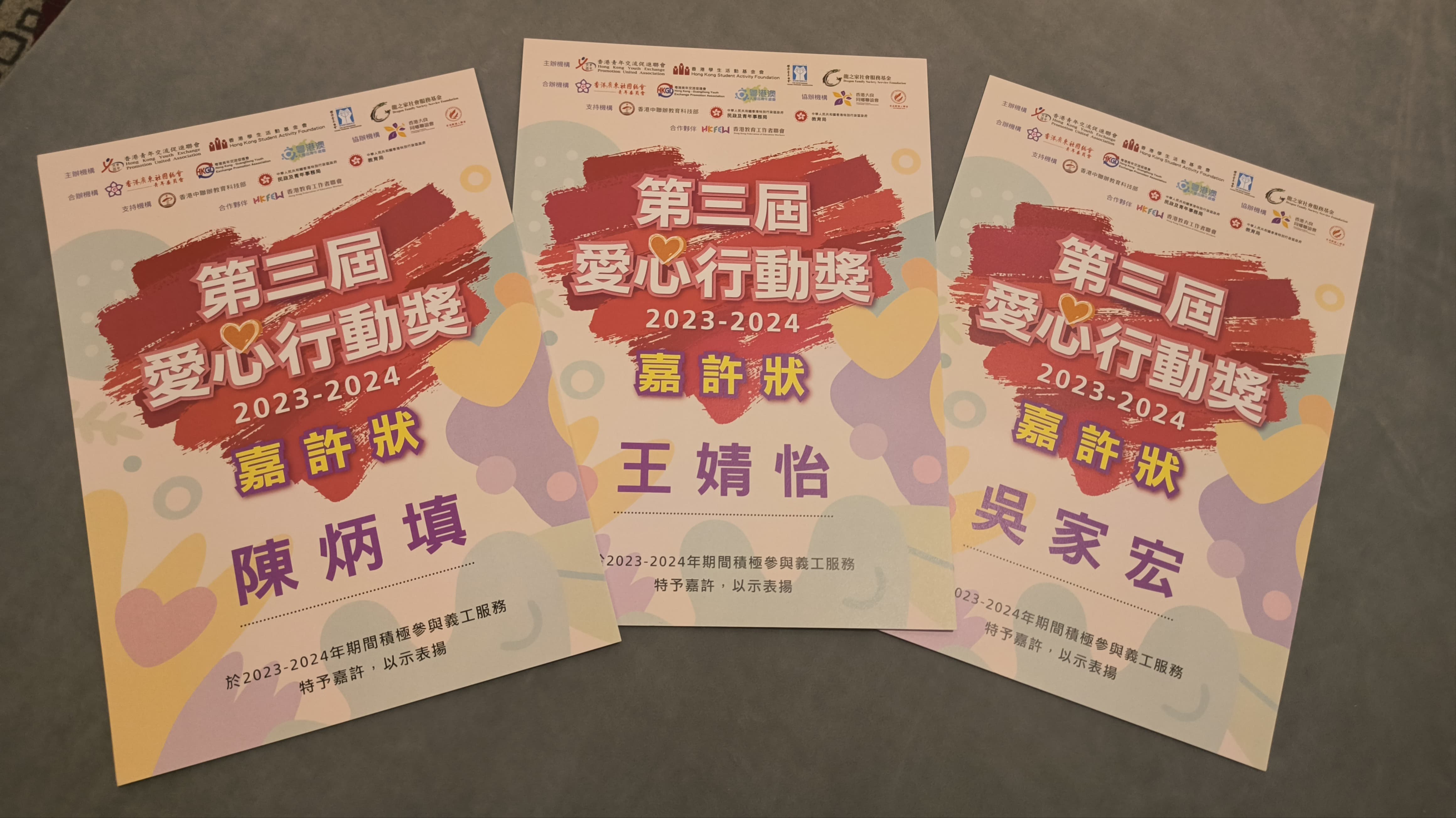 我校一直重視德育,致力培養學生關心社區、服務社群的精神。因此,我校學生積極參與義工服務,表現備受社會各界肯定。👍🏻繼早前三位學生獲香港義工獎2024兩銀一銅、我校獲評賽馬會眾心行善愛心學校後,6C陳炳填、6W王婧怡、5B吳家宏及5C吳泳家參加由香港青年交流促進會主辦的第三屆「愛心行動獎」,亦獲頒嘉許狀。今天,王婧怡即代表本校得獎學生,出席頒獎典禮。希望大家以他們為榜樣,熱心服務、貢獻己力,把世界變得更美好!
