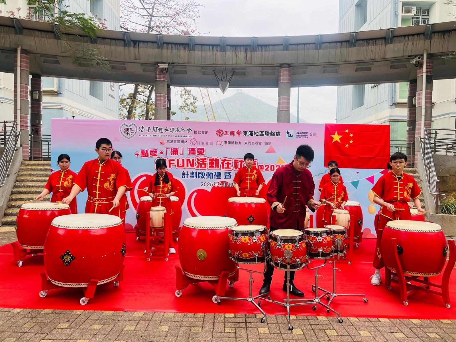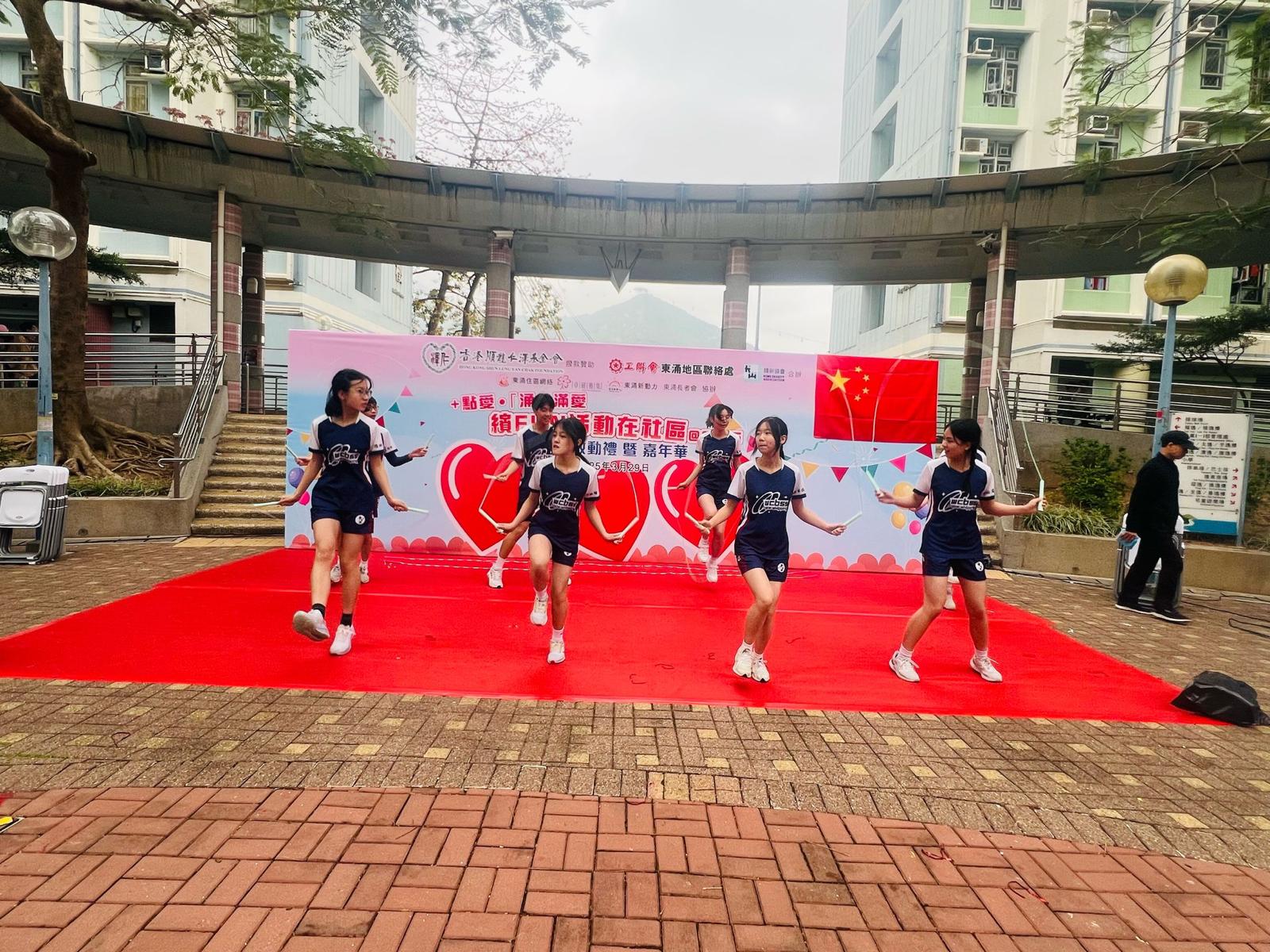 本校中國鼓隊、中國舞隊及跳繩隊參加由工聯會東涌地區聯絡處舉辦的「東涌活動多繽FUN@2025」活動典禮演出。此次活動旨在促進社區的文化交流與團結,讓不同年齡層的居民共同參與,享受多元的藝術表演。