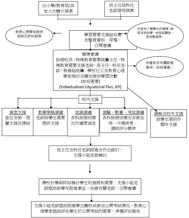 - 定期會見有特殊學習需要學生,關注他們的學業、社交和自我形象各方面的情況。